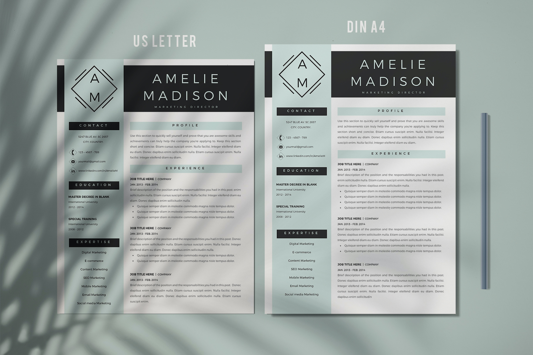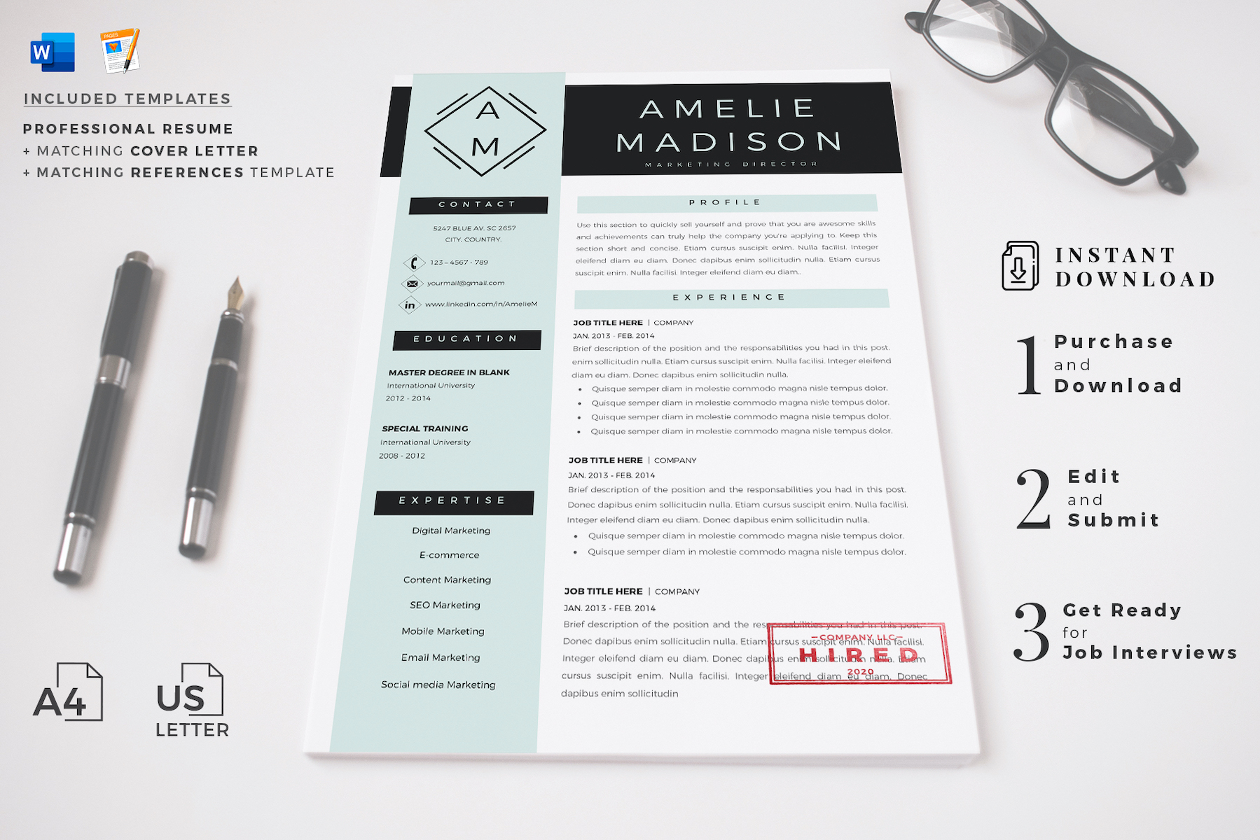 AMELIE - Marketing Resume Template for Word & Pages. CV with logo, Cover Letter & References