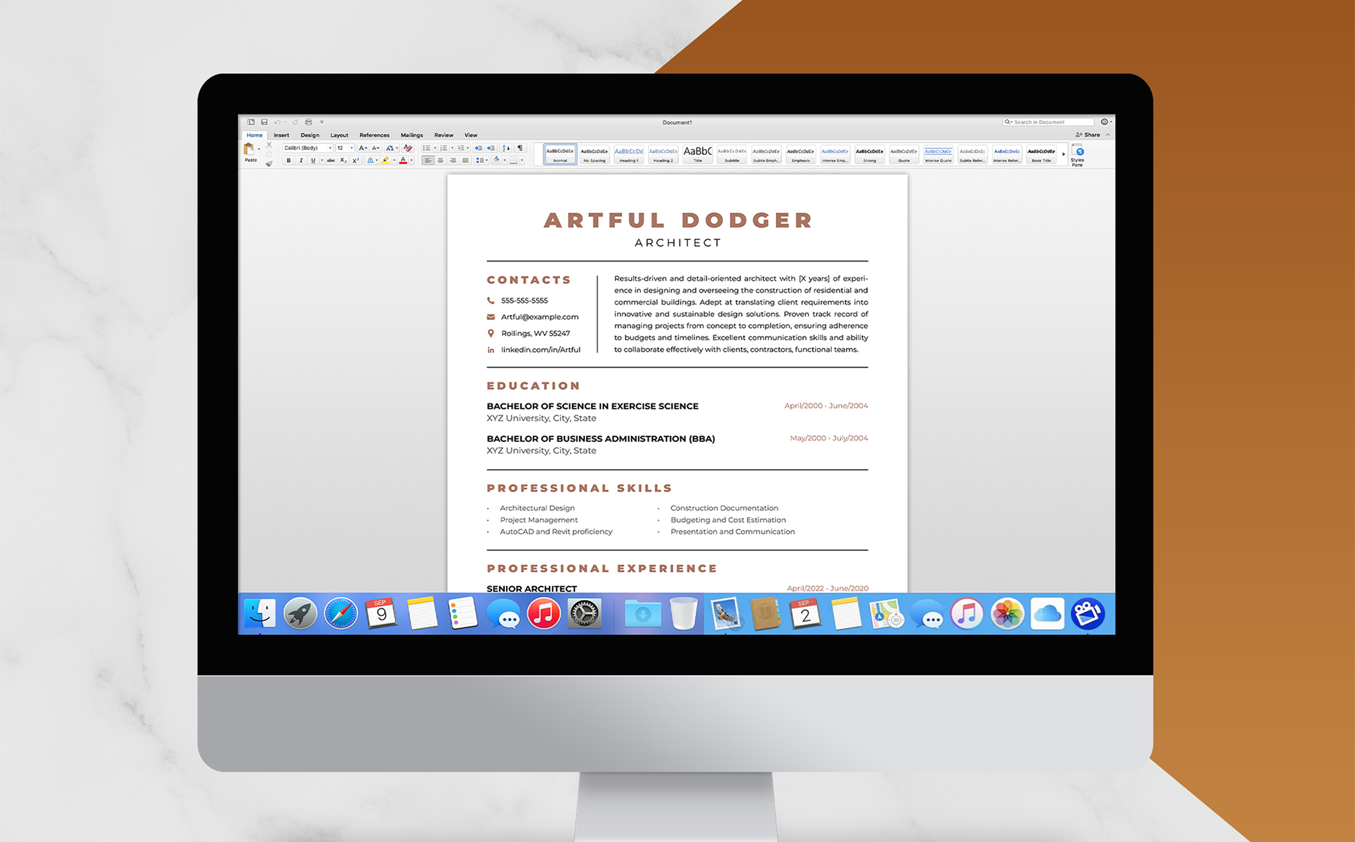 - Open the template in **Word, Pages, Google Docs, or Illustrator** and replace my "dummy" text with your resume content