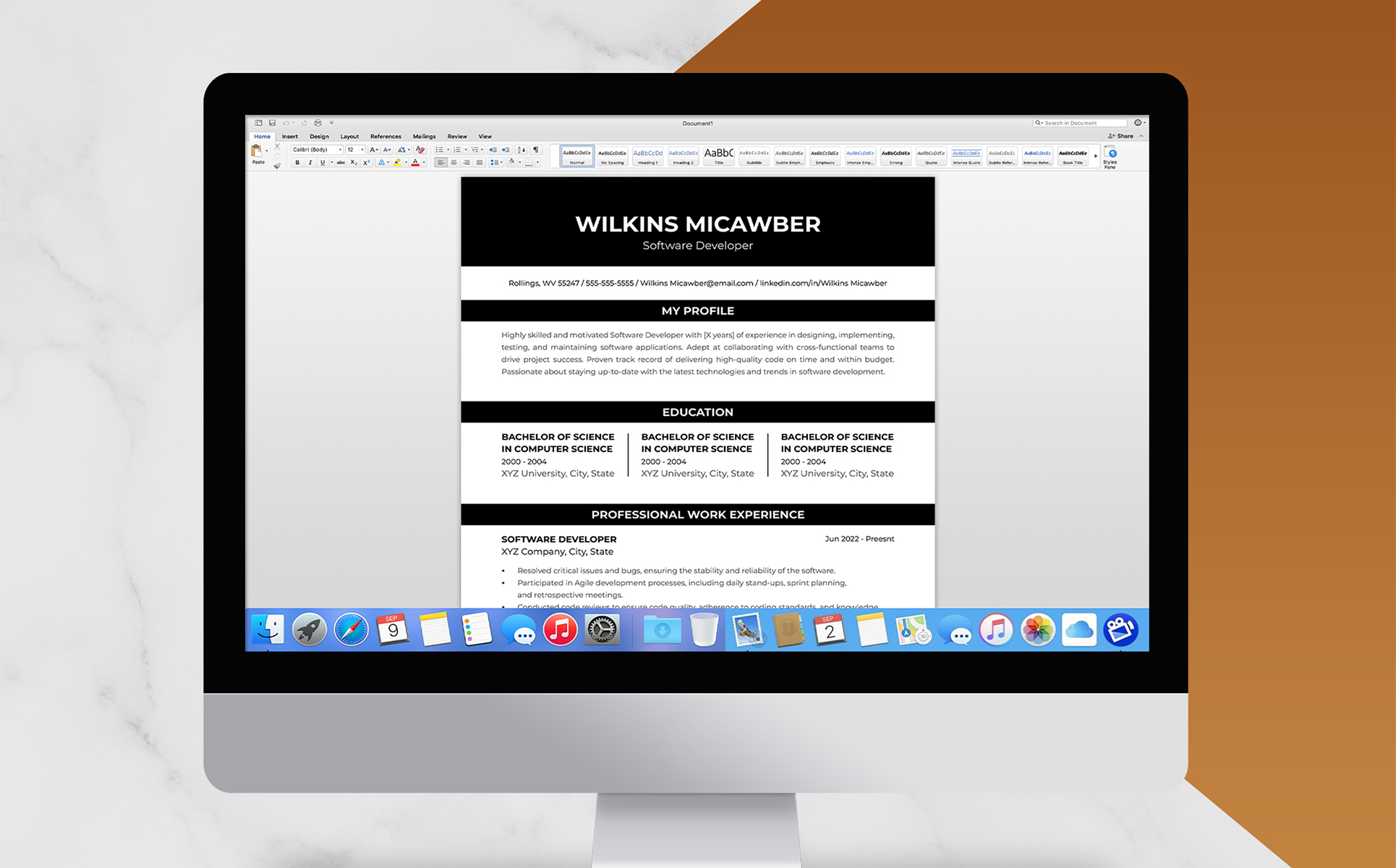 - Open the template in **Word, Pages, Google Docs, or Illustrator** and replace my "dummy" text with your resume content