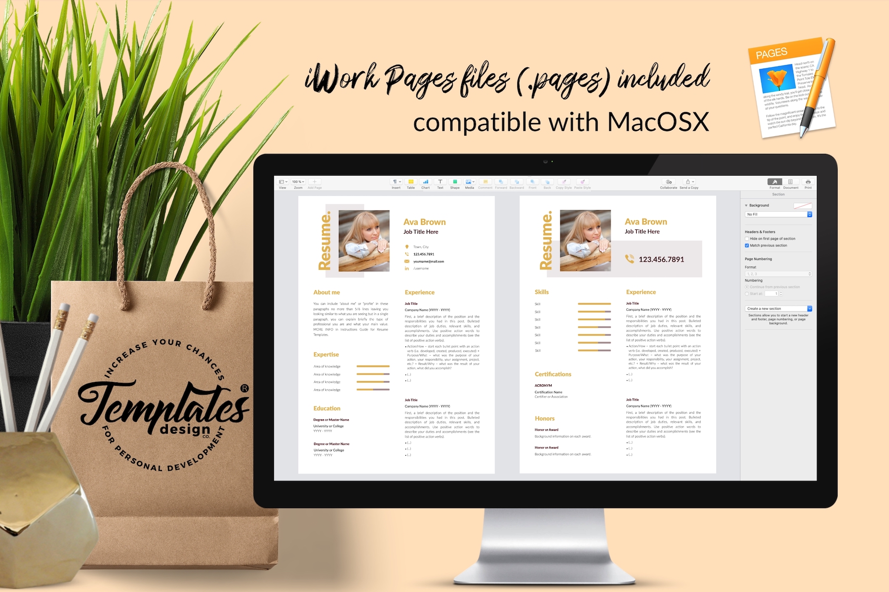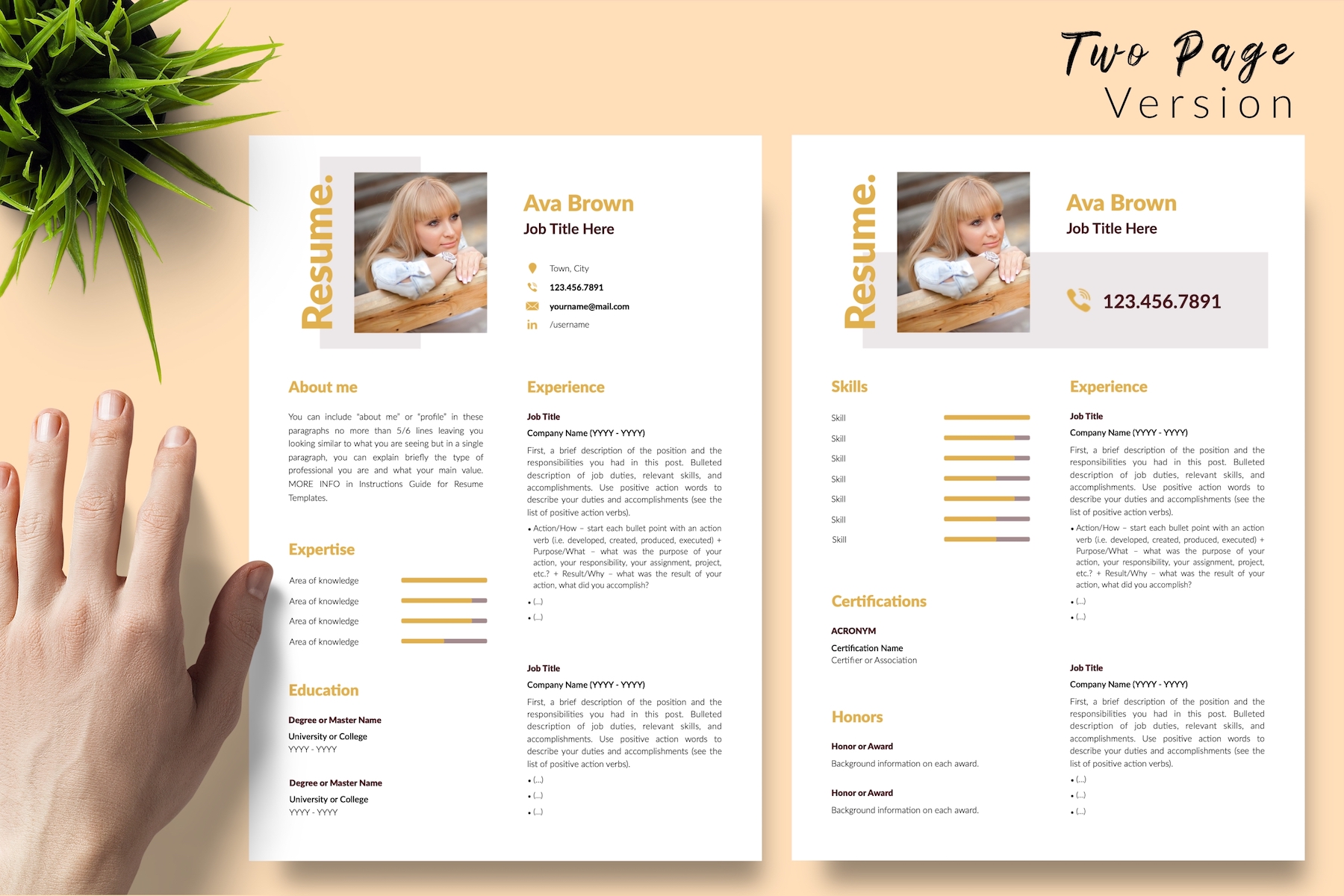 Ava Brown - Modern CV Resume Template with Cover Letter for Microsoft Word & iWork Pages
