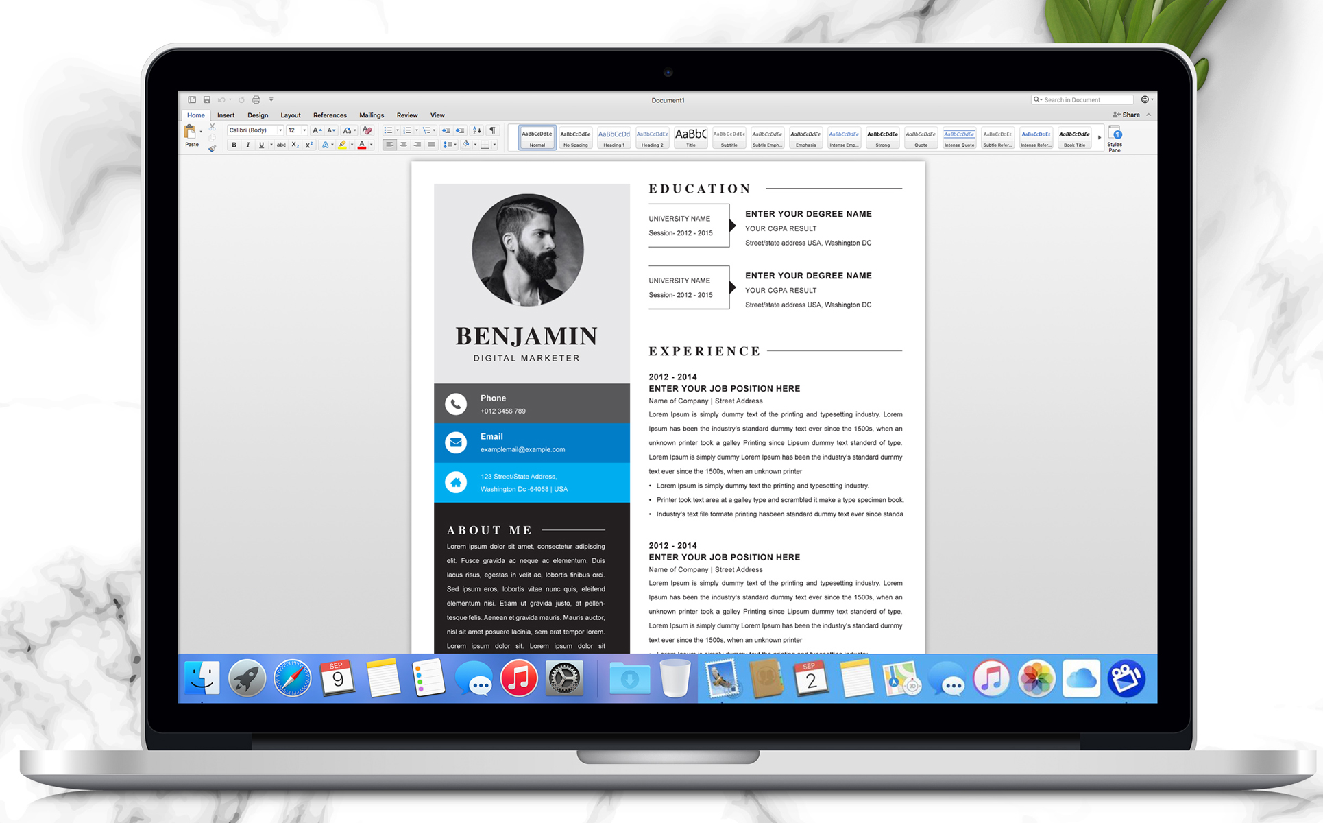 - Open the template in **Word, Pages, Photoshop, or Illustrator** and replace my "dummy" text with your resume content