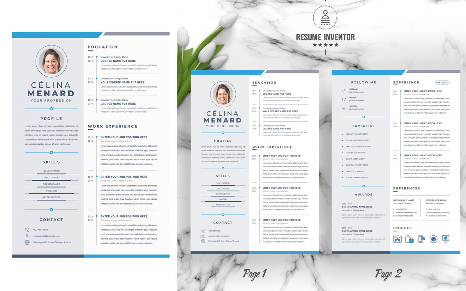 - 2,3 and 4 Pages Resume Templates with matching Cover Letter (if you need more pages just email us)