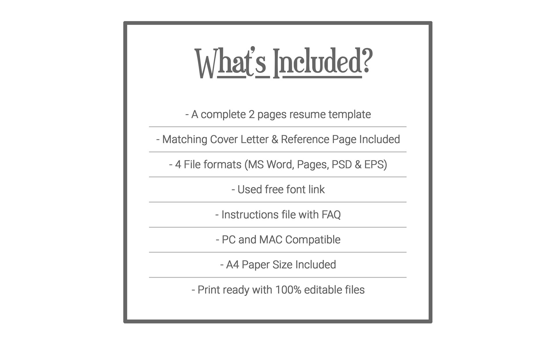 - Save your resume in Word, Pages, Photoshop, or Illustrator format AND as a PDF file to upload/email to potential employers and land that job! Directions are in the Instructions file if you need them =)