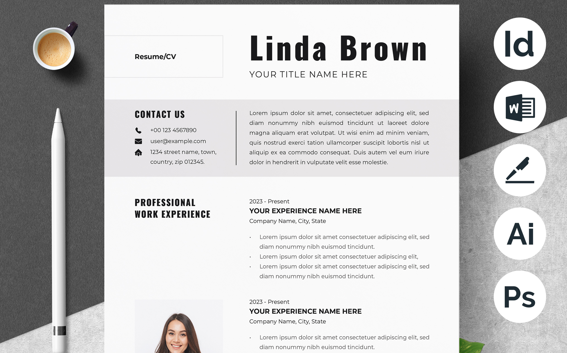 - Open the template in **Word, Pages, Photoshop, or Illustrator** and replace my "dummy" text with your resume content