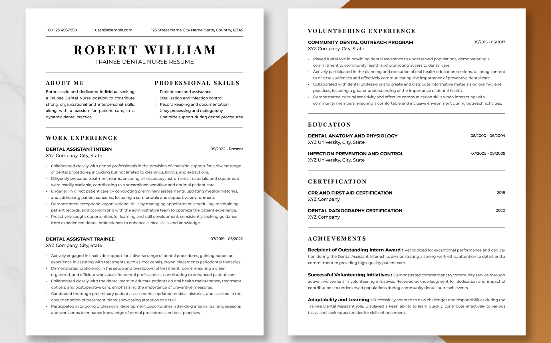 Clean ATS Friendly Trainee Dental Nurse Resume Resume Template