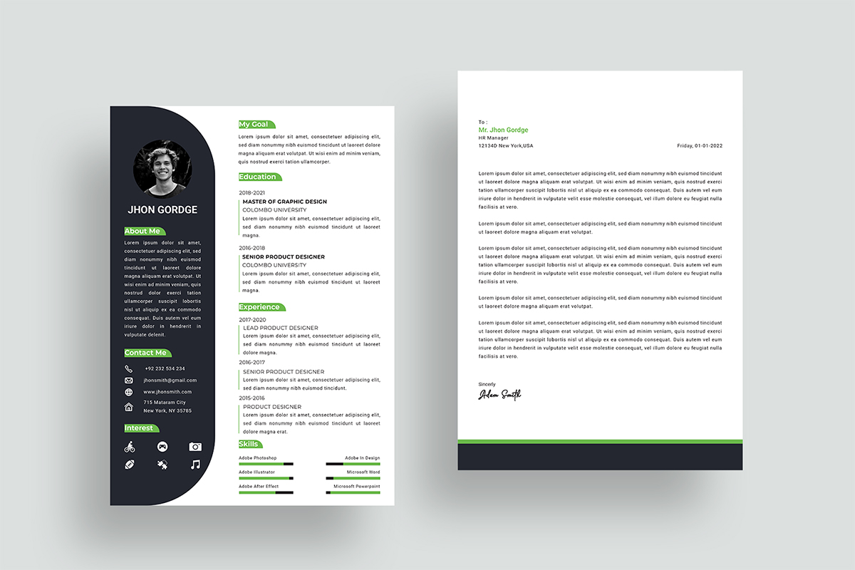 Clean Minimal Dark Gray Resume Template with Cover Letter