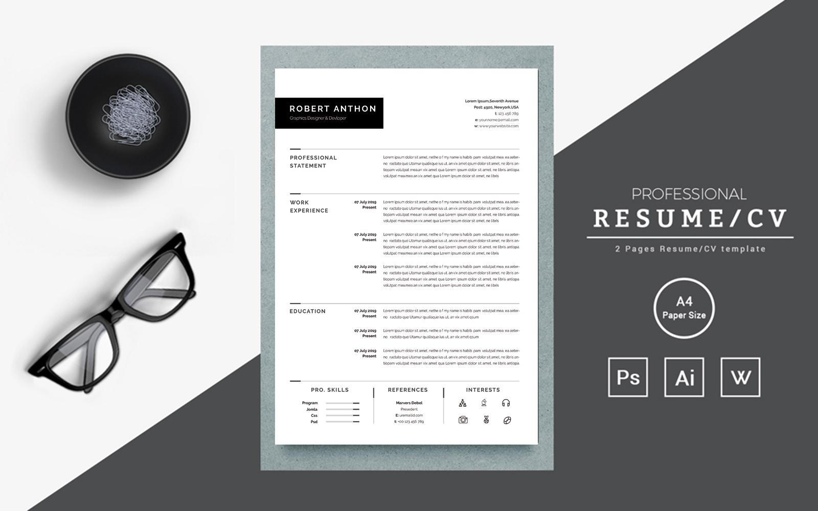 This resume will help you to get attention! The template is fully editable, for that reason you can easily edit it. Not only that, but also you can able to change its fonts, colors, and layout, add your own photo, also can add your information. The package includes with a resume template, a cover letter, and a references template in an elegant, modern theme. You get also some FONTS that help you to edit more easily. Here you also get support pdf files. this Resume or CV make your information more attractive to other and that is very important at this time.
