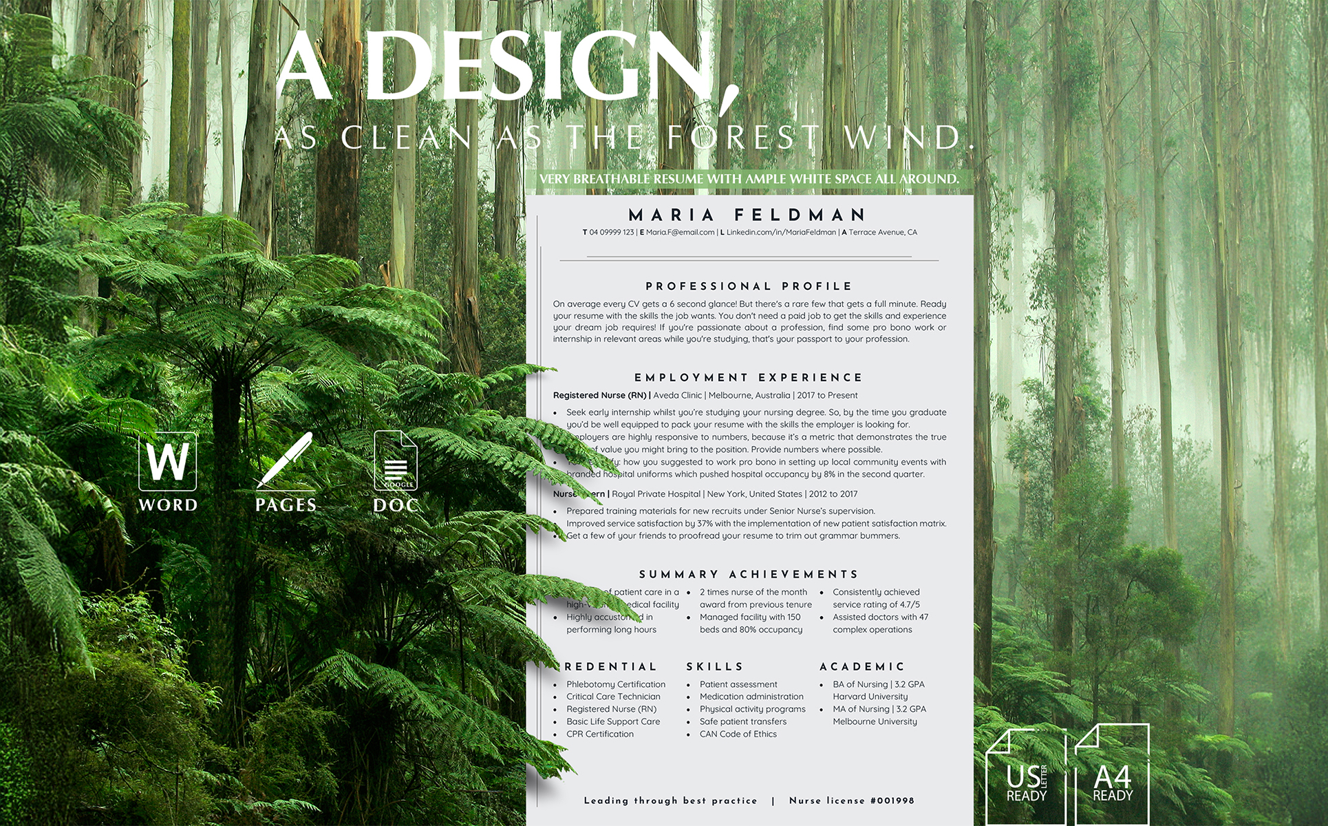 CLEAN MINIMALIST Resume Template, Nurse/Rn/Registerd Nurse, Registered Nurse Resume, CV Template
