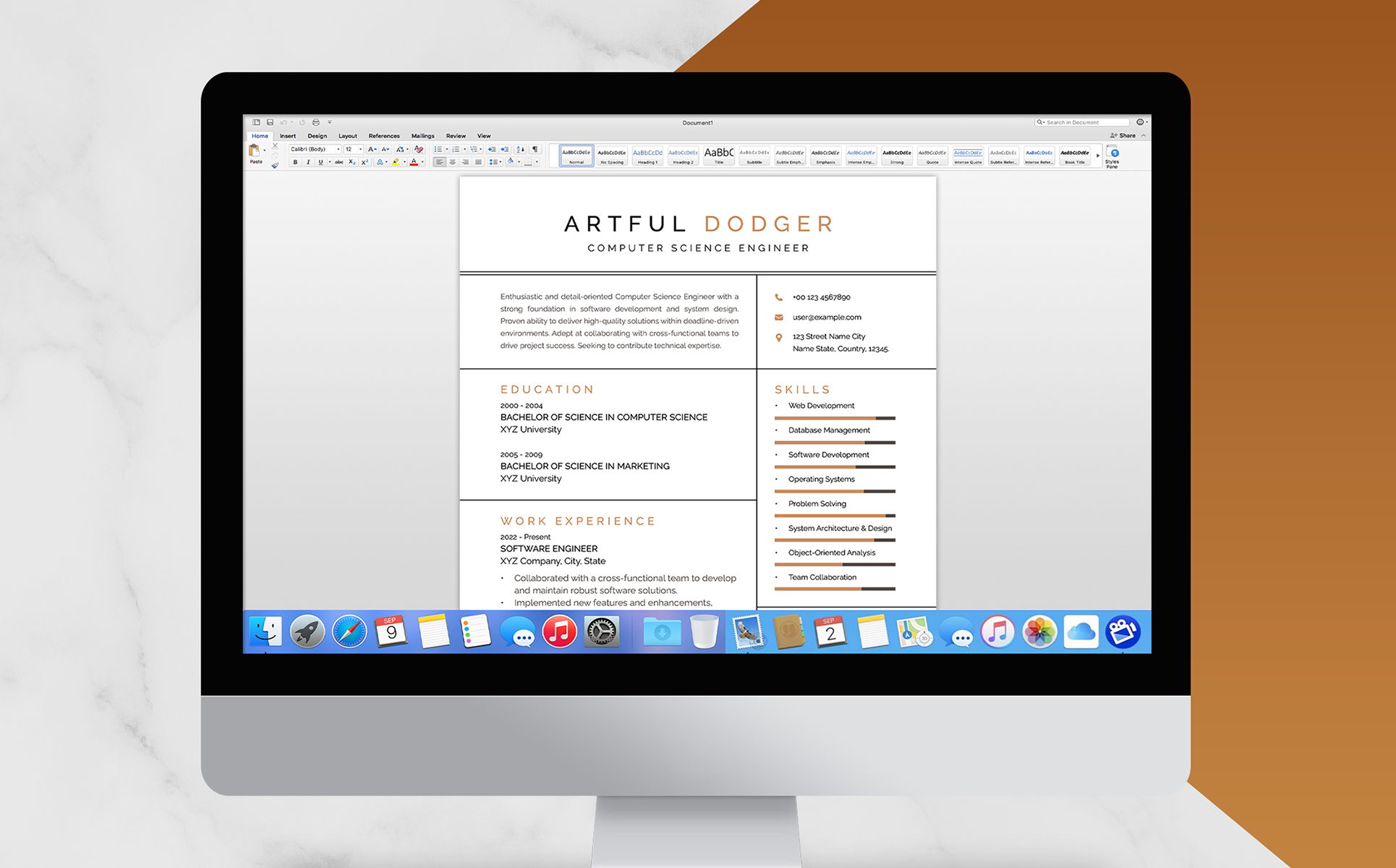 - Open the template in **Word, Pages, Google Docs, or Illustrator** and replace my "dummy" text with your resume content