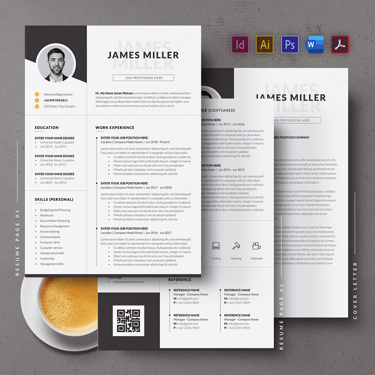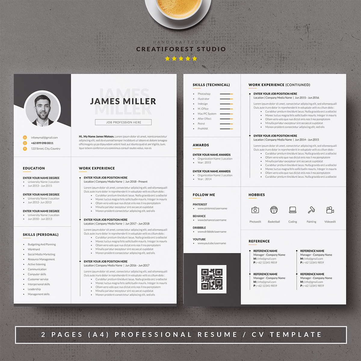 Professional, Modern, Clean and Minimal Resume / CV Template. The perfect way to make the best impression. Strong typographic structure and very easy to use and customize. The resume is very well organized and labeled for you to get the best result in the minimum possible time.