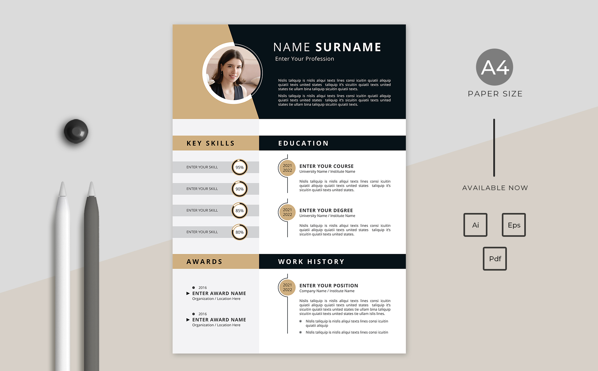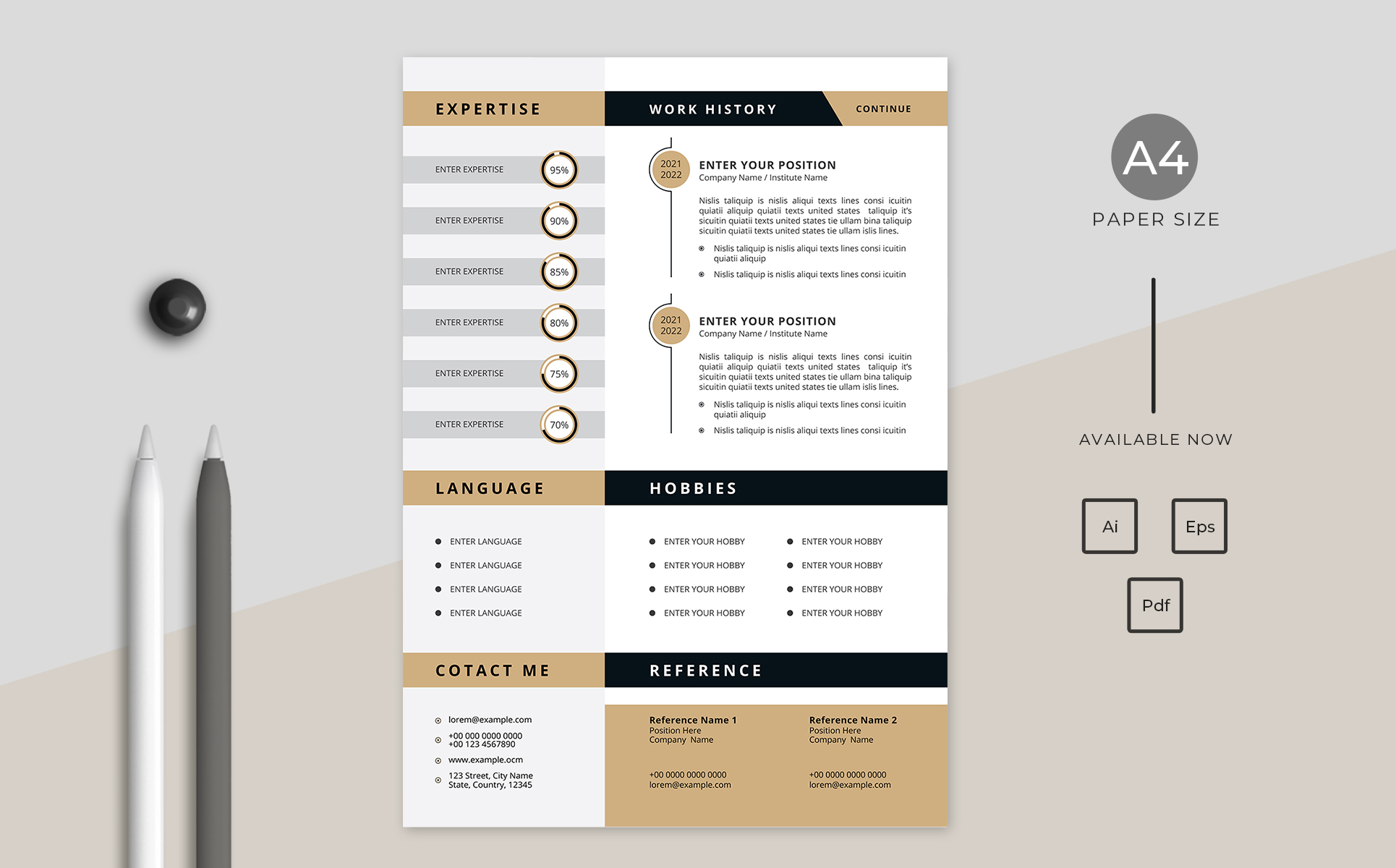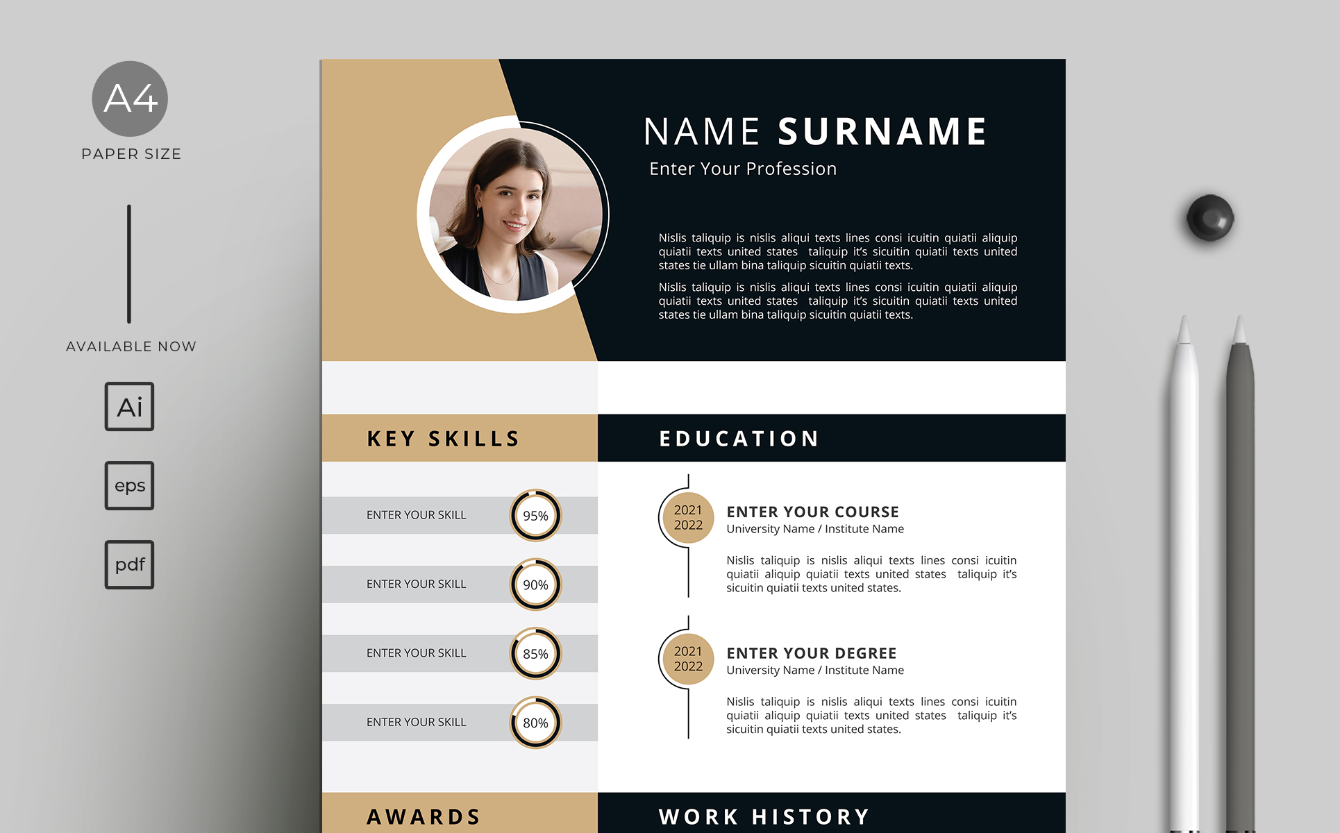 This is a creative printable resume / cv template. Print Ready with 100% editable file. it’s designed by Adobe Illustrator. This is a professional CV format template setup with CMYK, Layered, 300 dpi, bleeds & safe guides, trims and free font. Template specification format a4 size 210x297 mm print dimension. It's a fully professional CV format. Thank you & hope you will enjoy it!