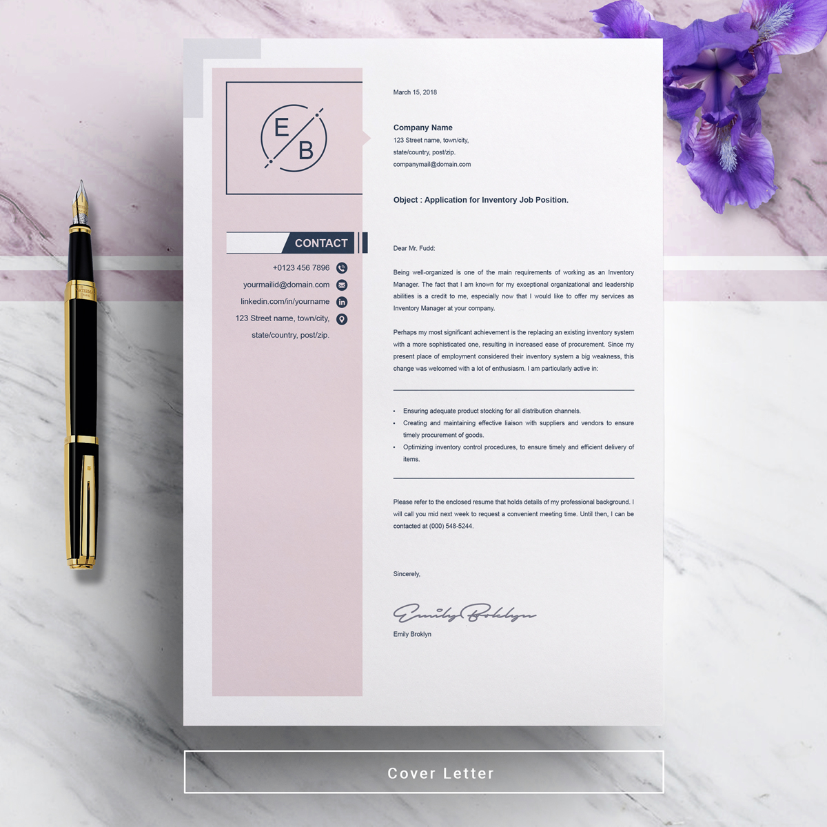 - & One Page Cover Letter Template
