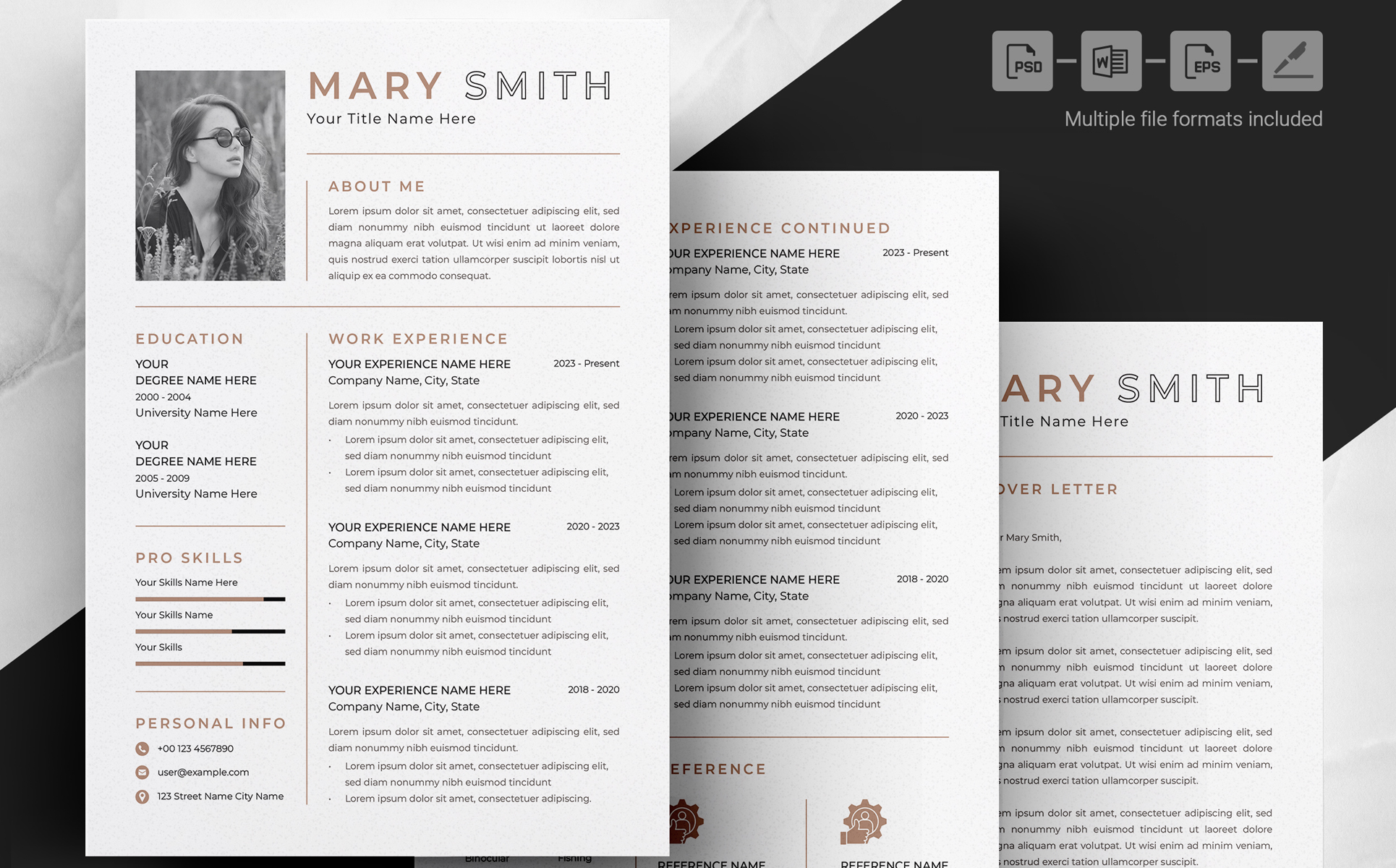A template is simply multiple file formats Microsoft Word document (or Mac Pages document, Photoshop (PSD) Illustrator (EPS) that is formatted using "text boxes" filled with my "dummy" information that you will type directly over with your resume info. A quick text box tutorial is included in the Instructions file, included with the purchase.