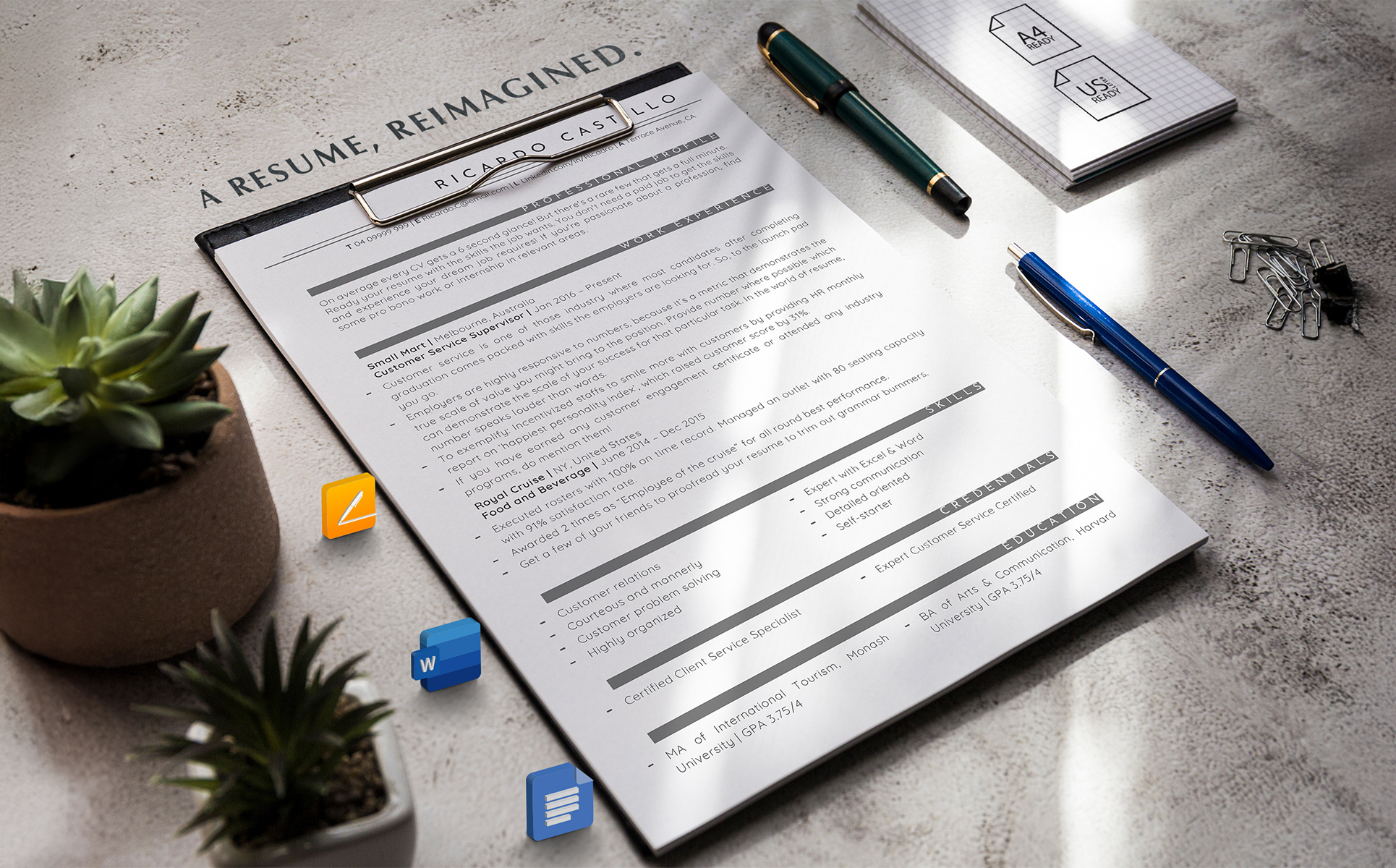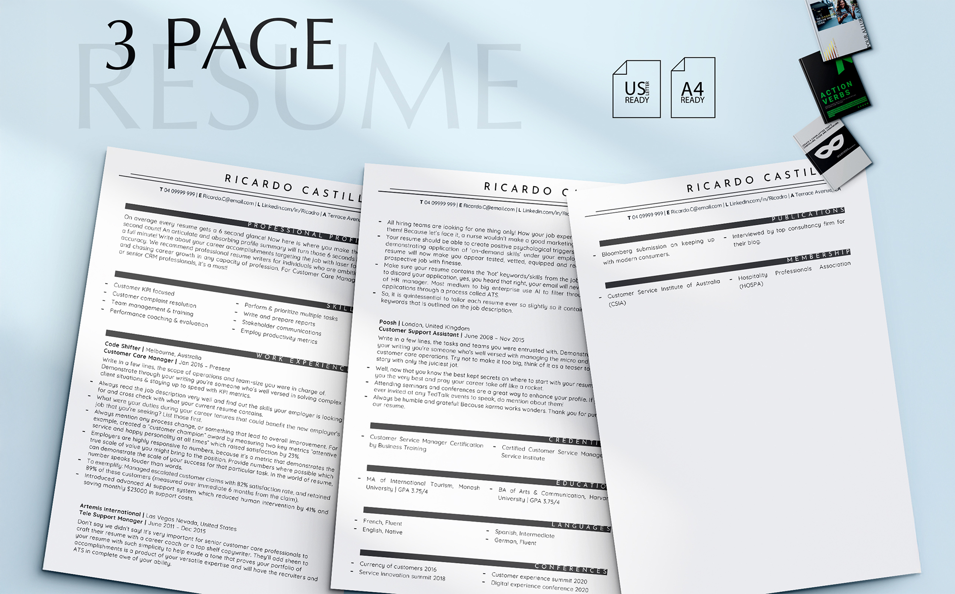 Customer Service Resume Template – ATS Friendly Call Center Resume, Customer Support CV