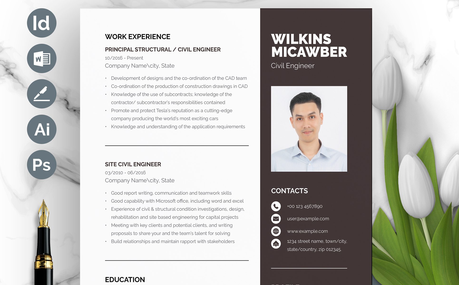 - Open the template in **Word, Pages, Photoshop, or Illustrator** and replace my "dummy" text with your resume content