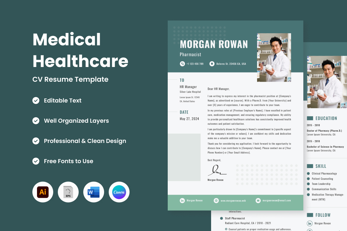 Elevate your job application with CV Resume Medical Healthcare V2, a resume template designed specifically for healthcare professionals. This template offers a sleek and contemporary design that emphasizes your skills and achievements. With dedicated sections for technical skills, work experience, education, and certifications, CV Resume Medical Healthcare V2 allows you to present your credentials in a clear and impactful way. The clean design ensures your resume is both visually appealing and easy to read, helping you capture the attention of hiring managers.