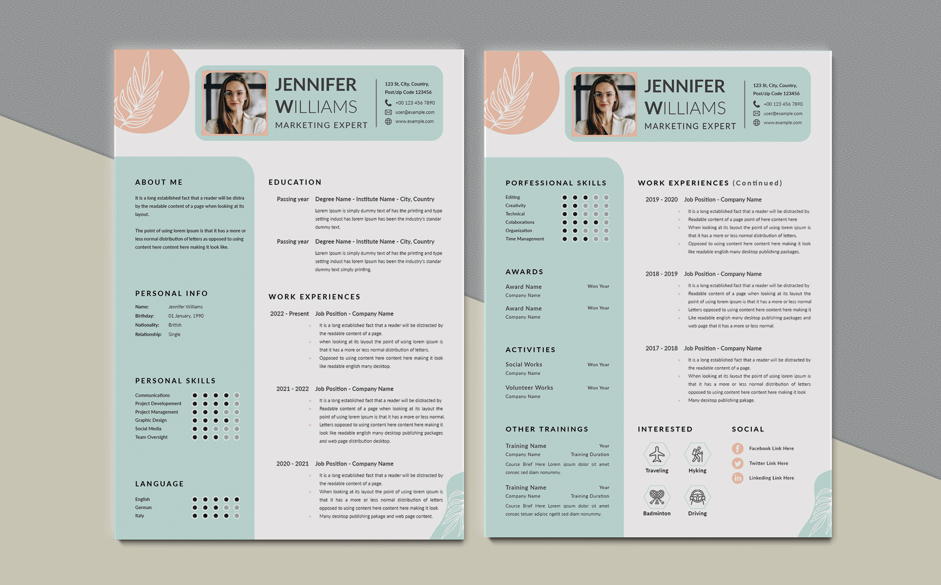 - Two Page Resume/CV Template