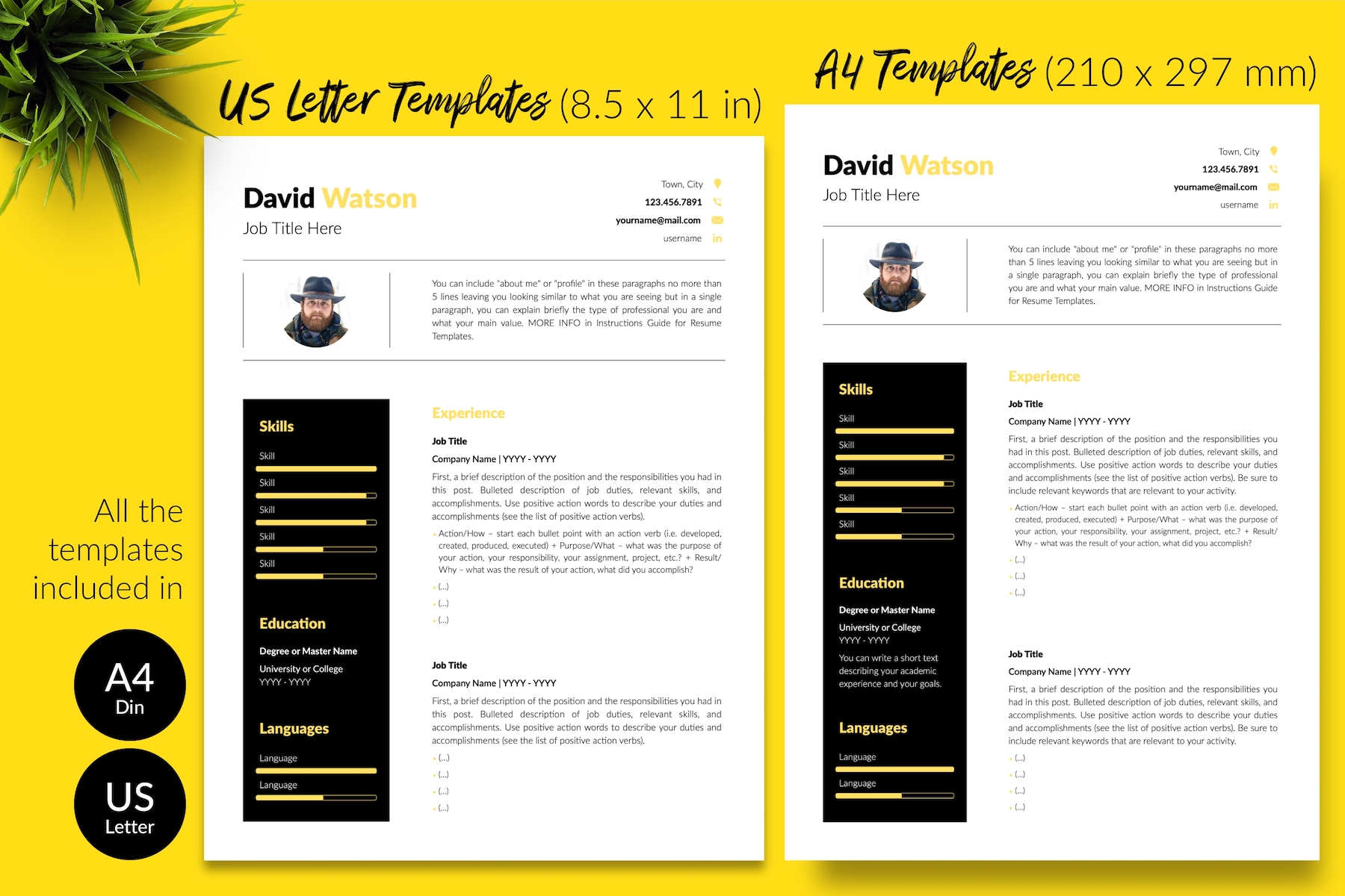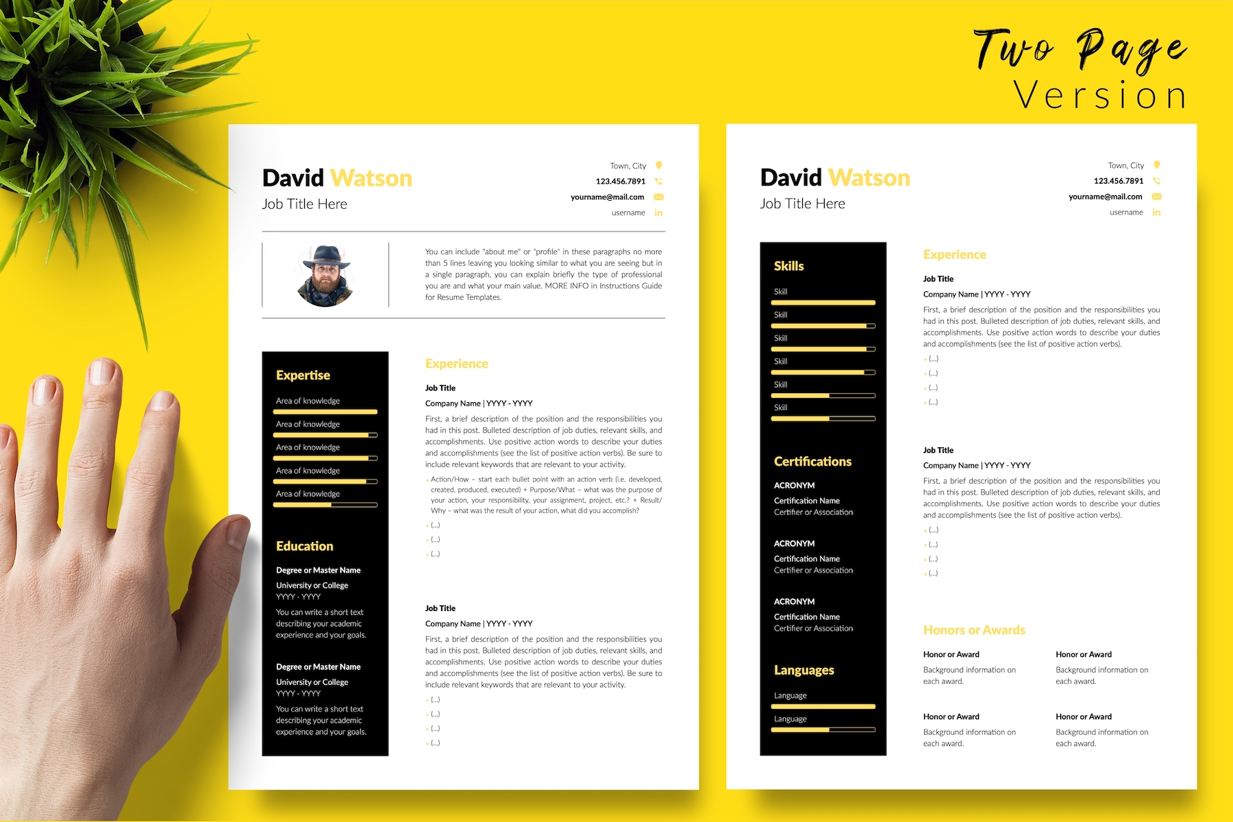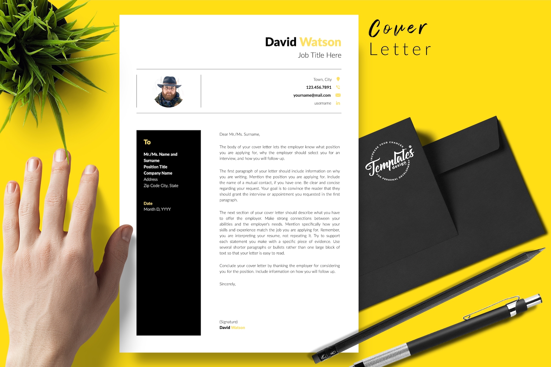 David Watson - Creative CV Resume Template with Cover Letter for Microsoft Word & iWork Pages