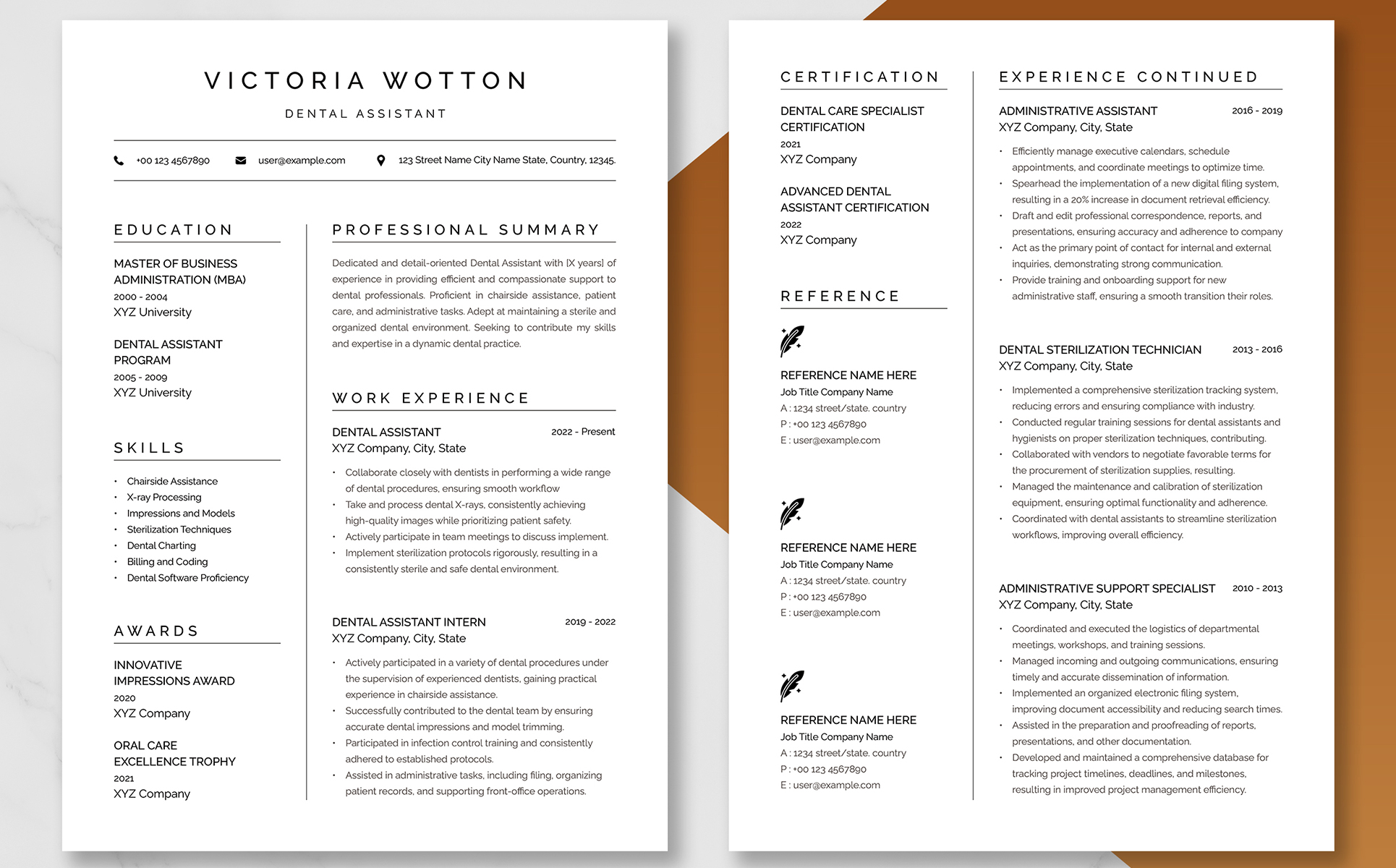 Dental Assistant Resume Template | Modern MS Word Resume & Google Docs Resume