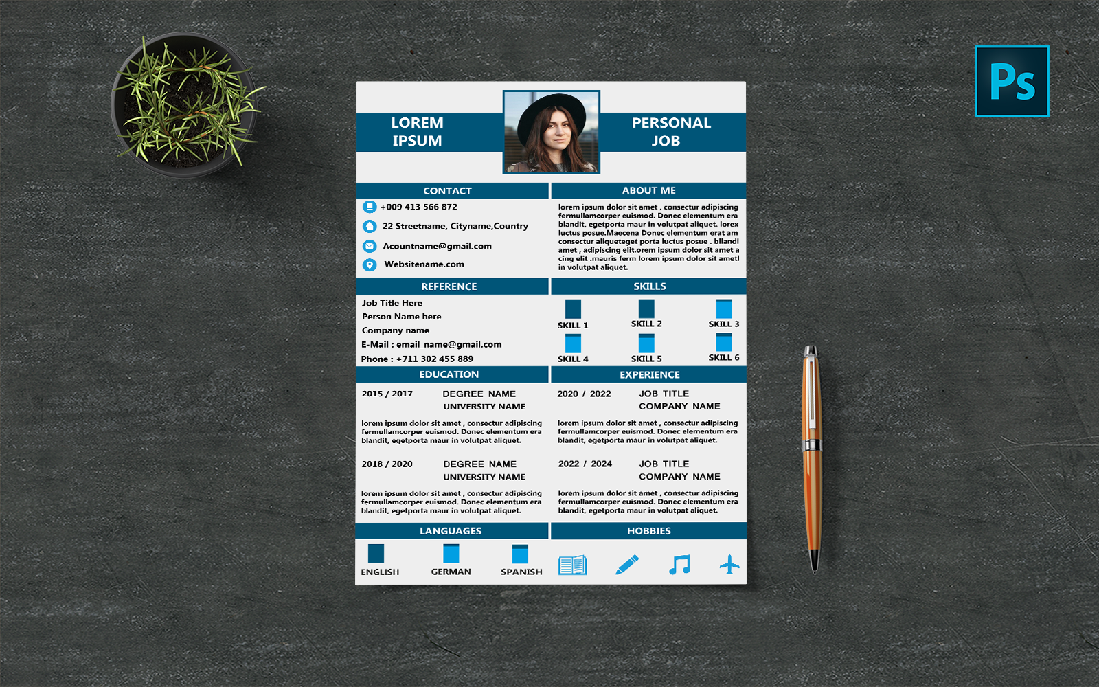 Elegant Resume Template , made by Adobe Photoshop .It an elegant design so If you looking or applying a job that template design will be a good and elegant . It easy editable ( Fonts , colors , shapes , ...etc and avaliable in Psd format .