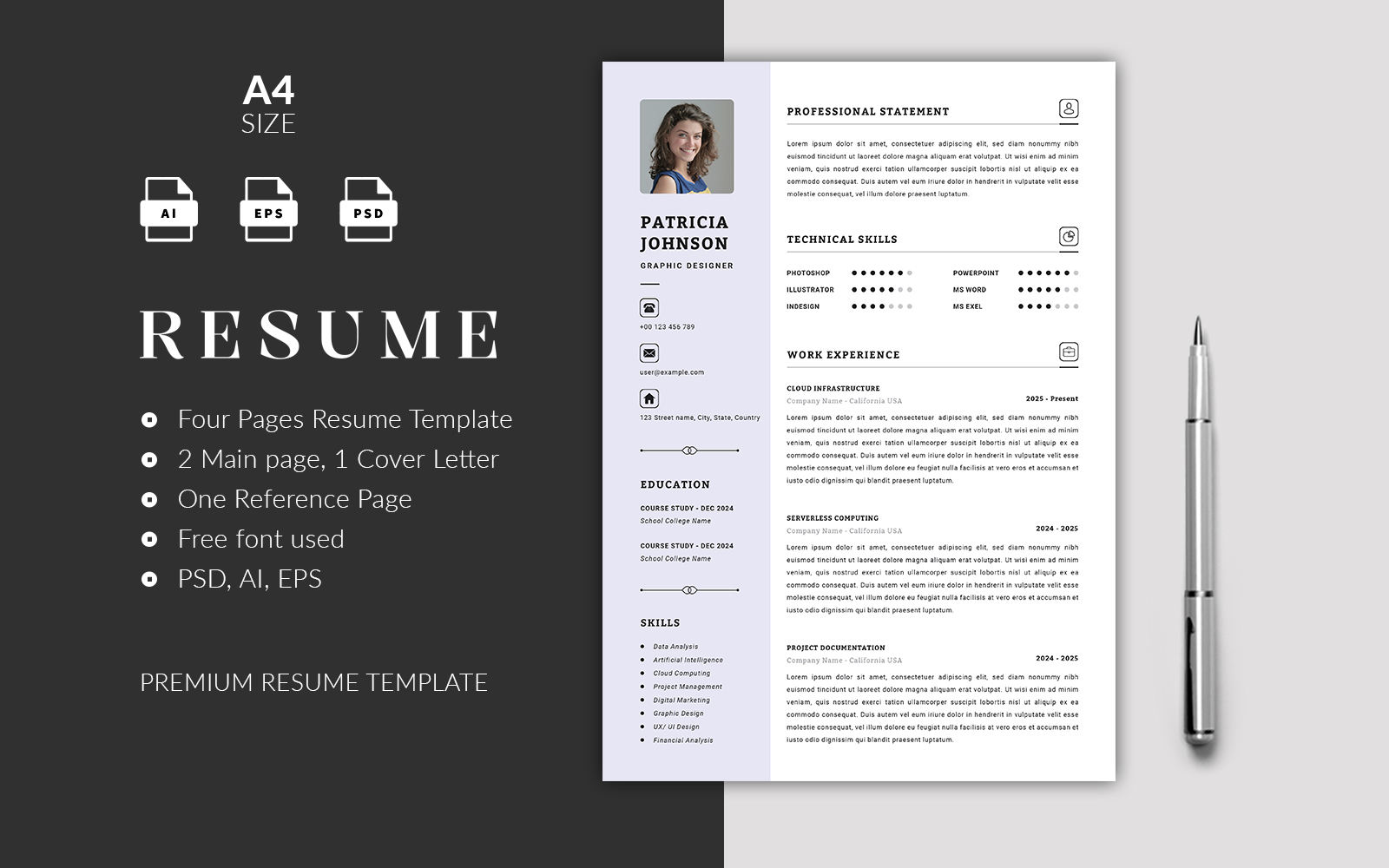 Elegant Four-Page Resume Template – Perfect for Any Career