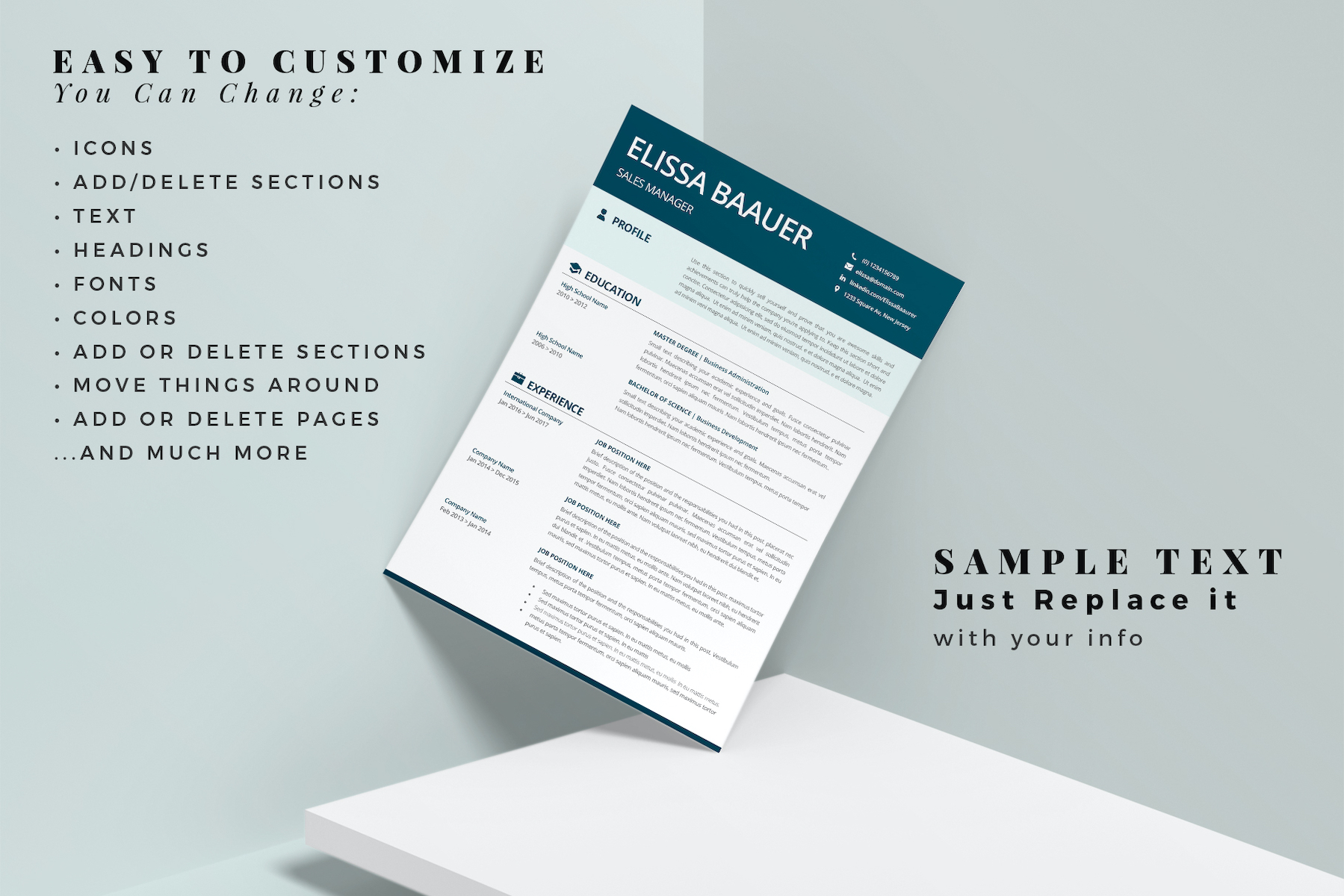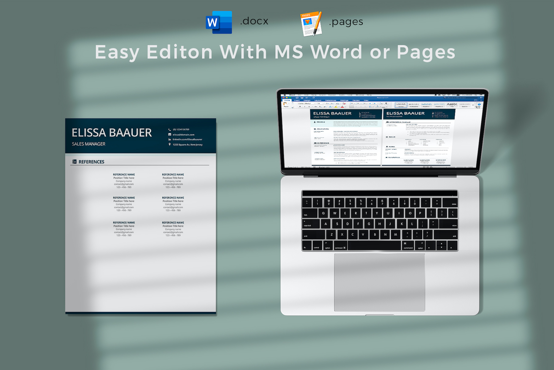 ELISSA - Modern Resume. Professional Biodata template for MS Word & Pages. Sales Manager CV Resume Template