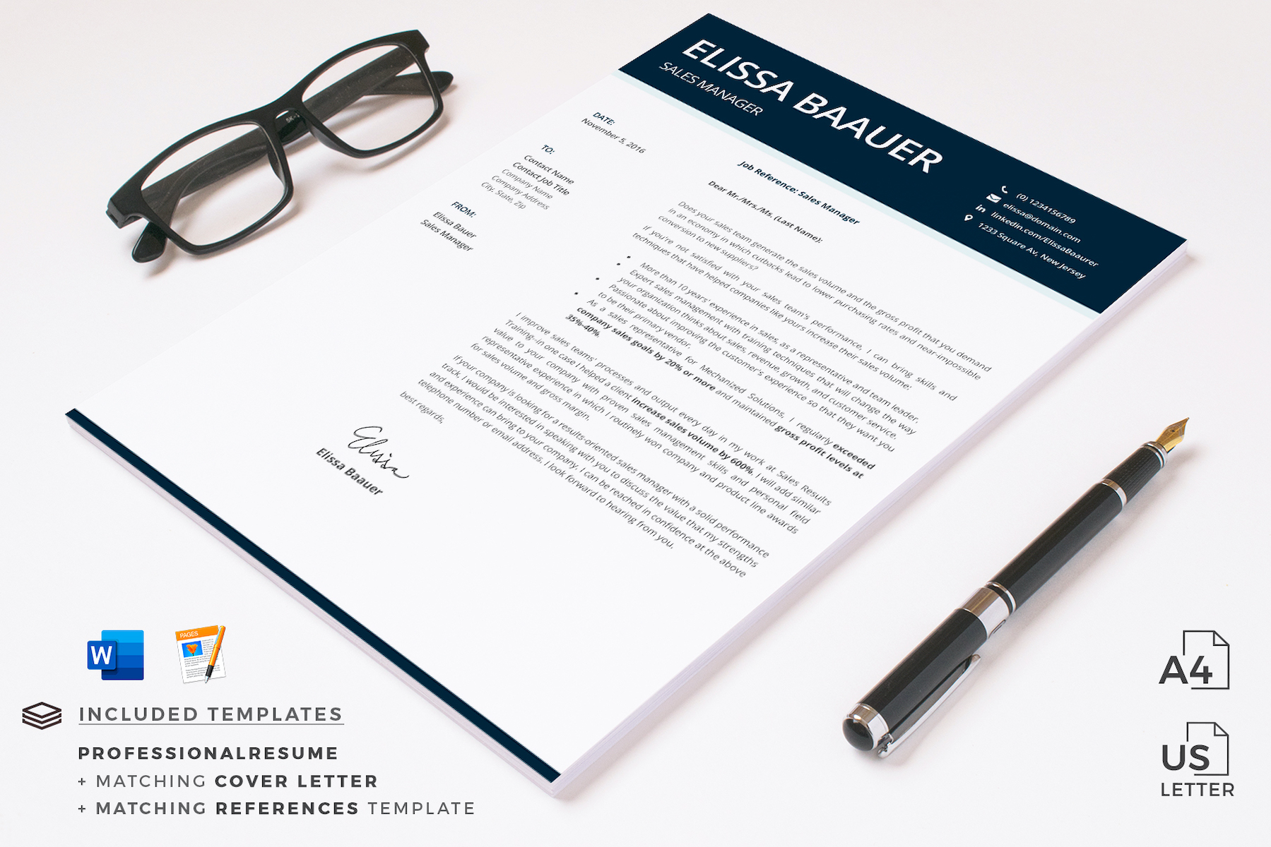 → US Letter & A4. Both Sizes are included for Word and Pages