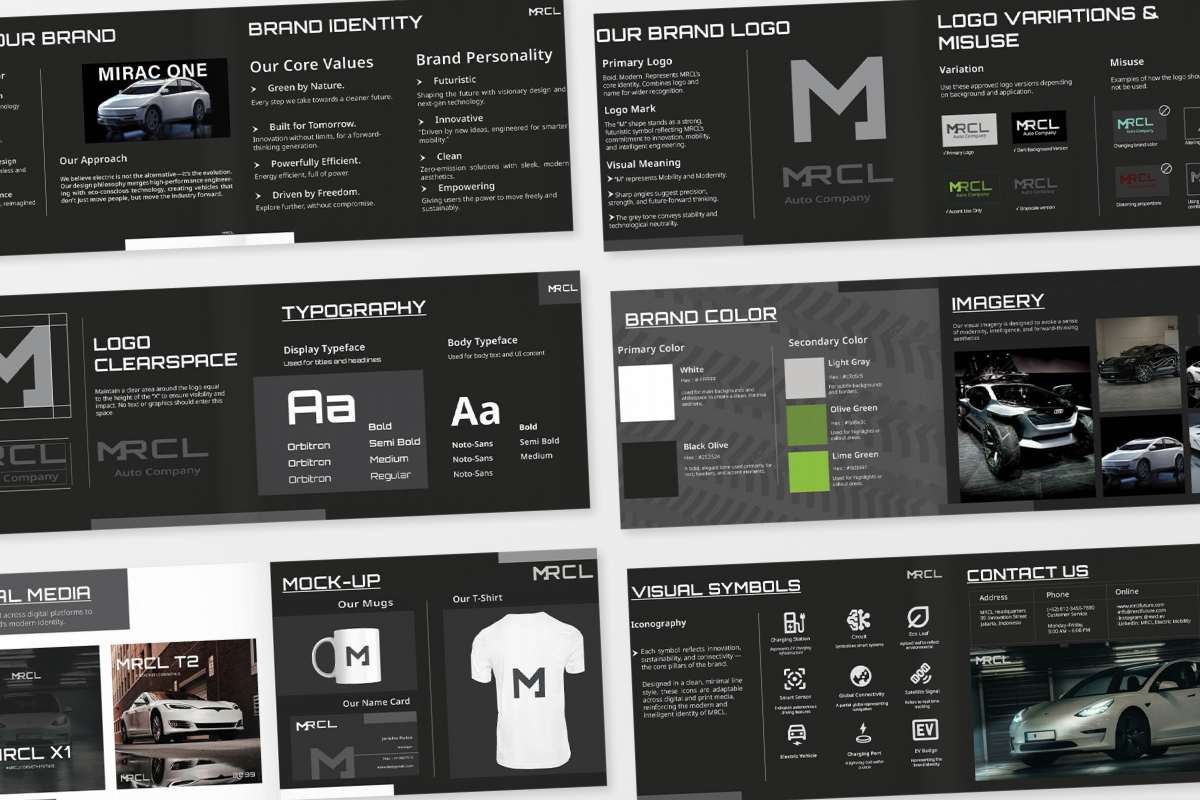 A sleek brand guideline crafted for EV and tech-forward companies. With futuristic minimalism and techno-corporate fusion, it empowers designers and marketers to present a clean, high-impact visual identity. Perfect for those aiming to communicate innovation and trust through design.