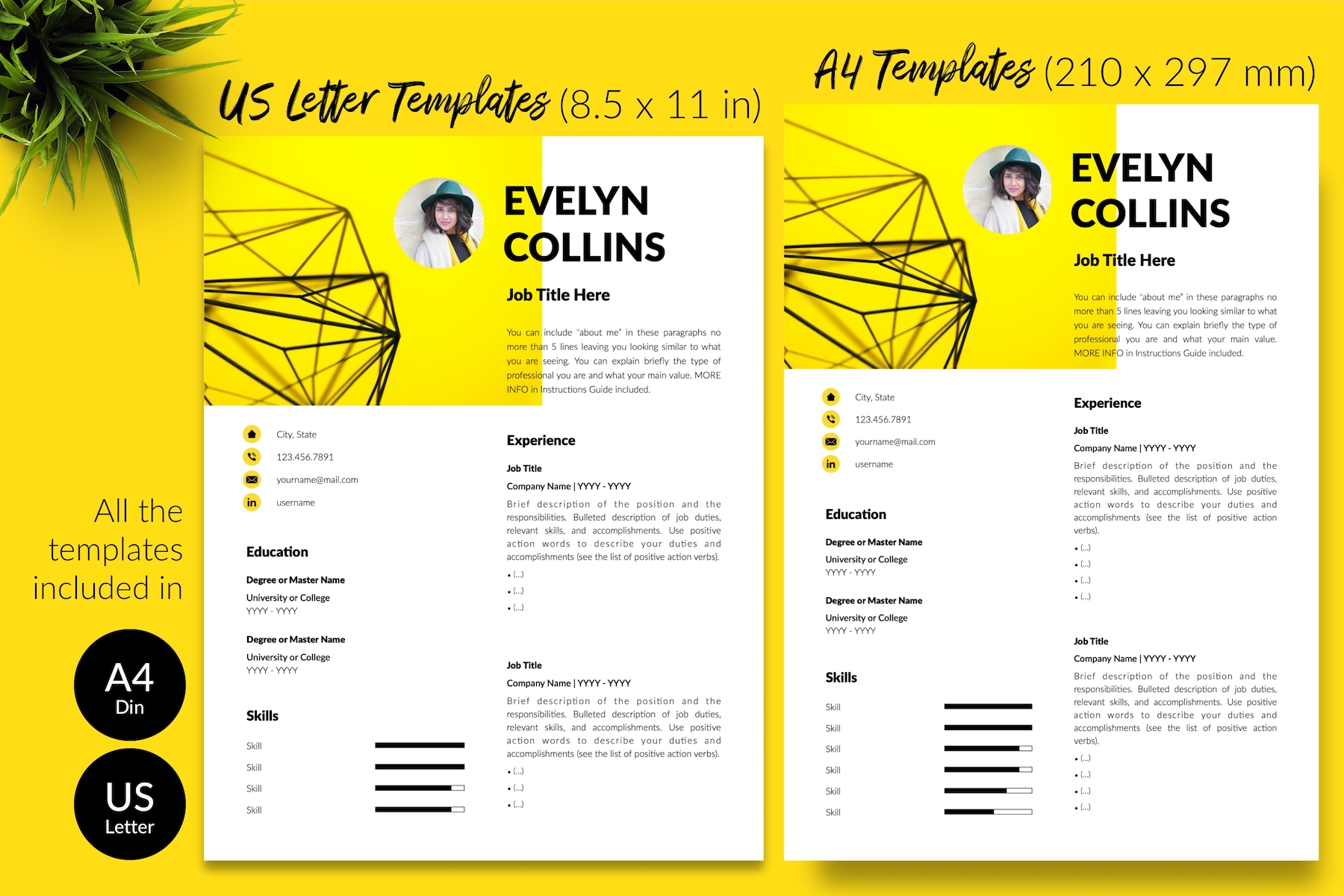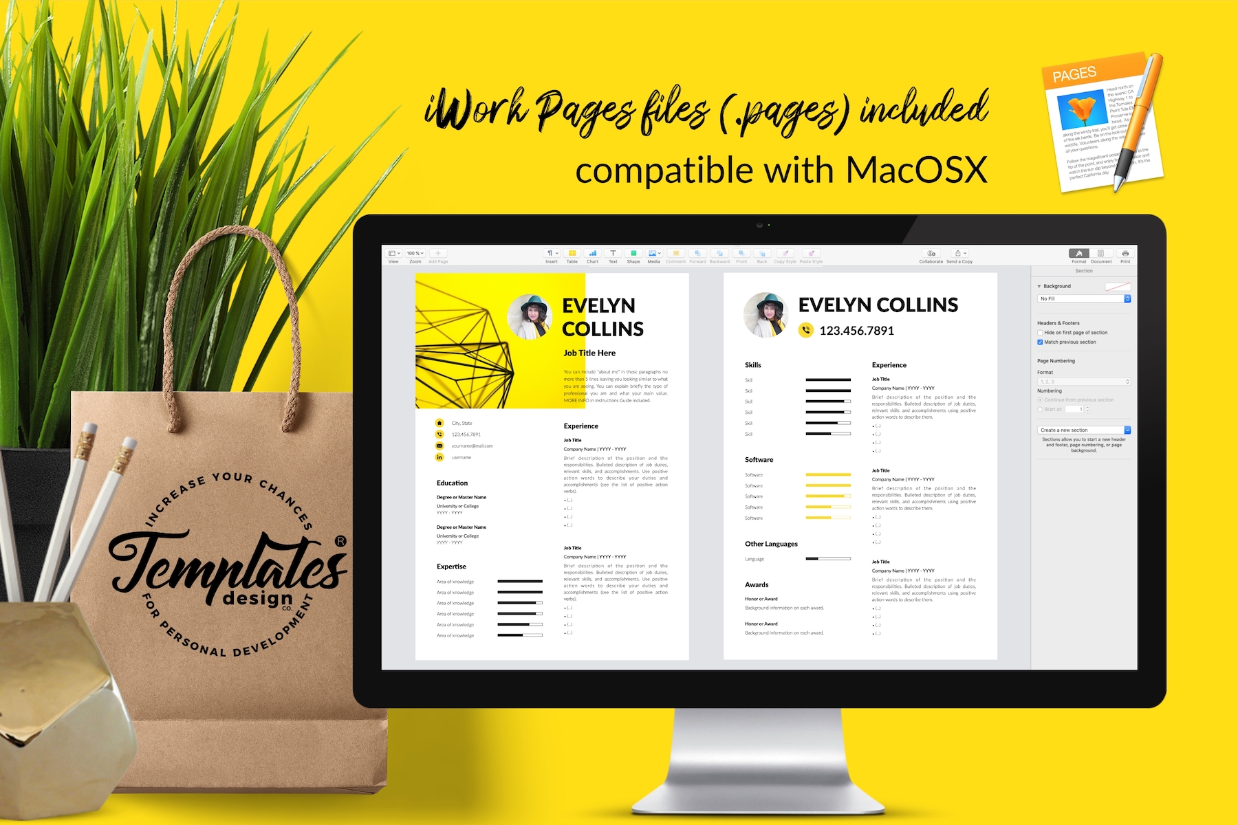 Evelyn Collins - Modern CV Resume Template with Cover Letter for Microsoft Word & iWork Pages