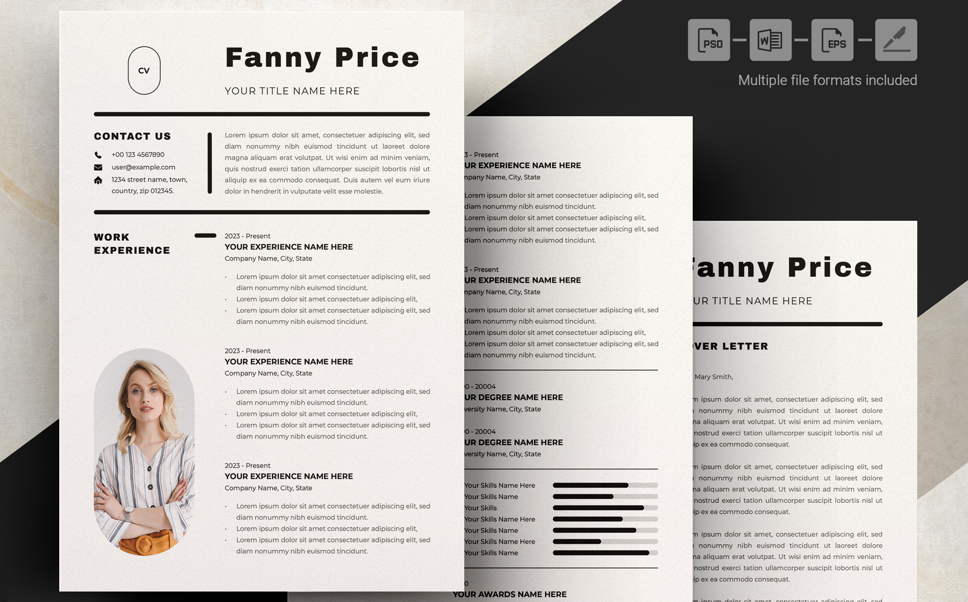 A template is simply multiple file formats Microsoft Word document (or Mac Pages document, Photoshop (PSD) Illustrator (EPS) that is formatted using "text boxes" filled with my "dummy" information that you will type directly over with your resume info. A quick text box tutorial is included in the Instructions file, included with the purchase.