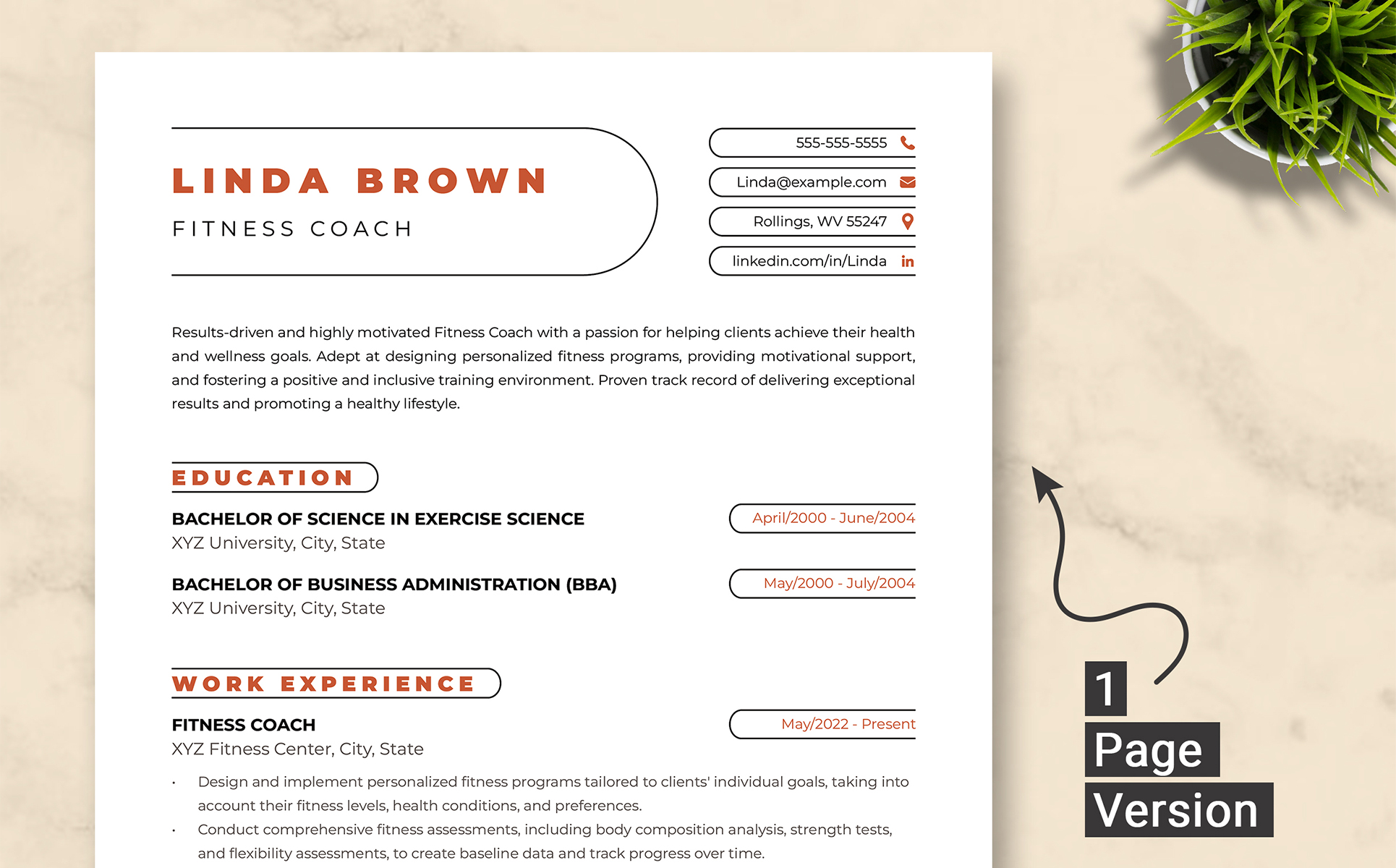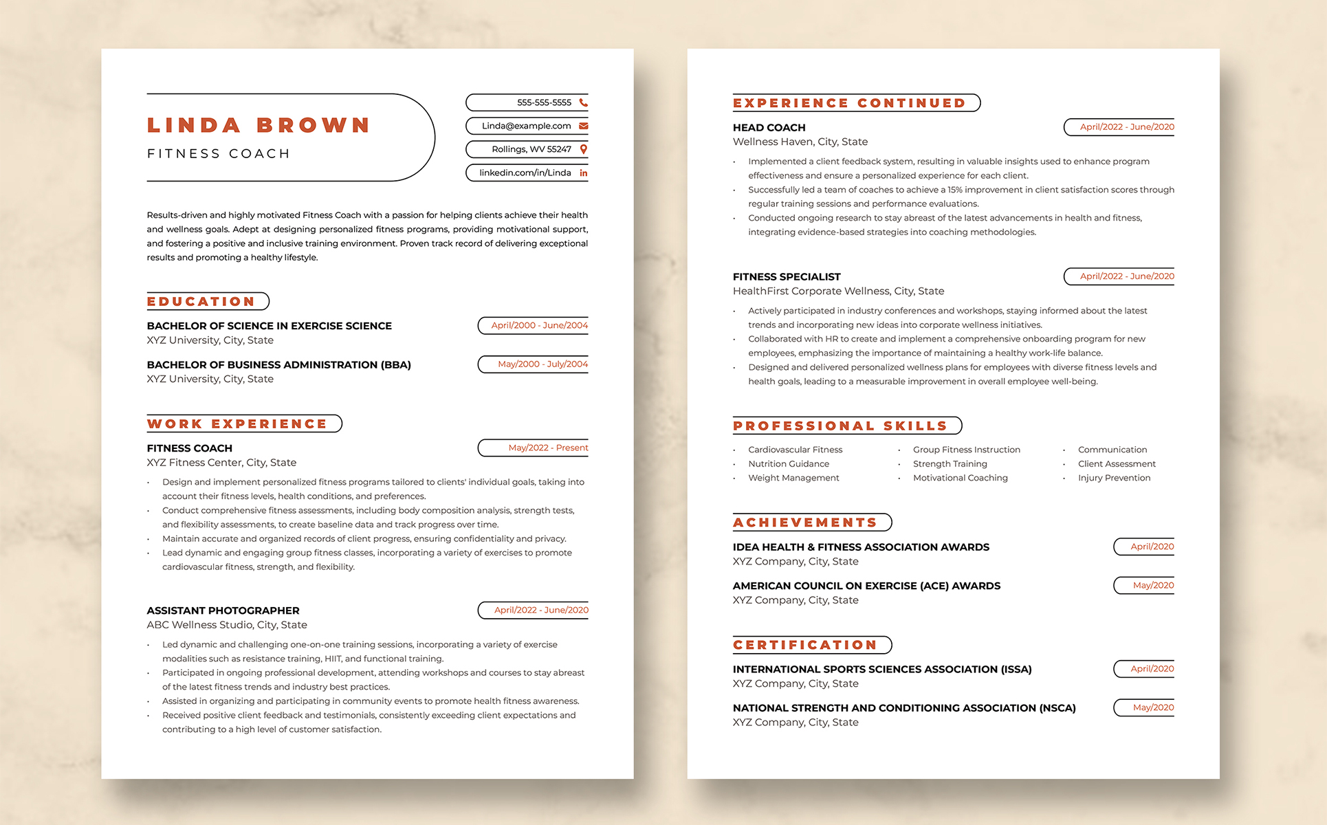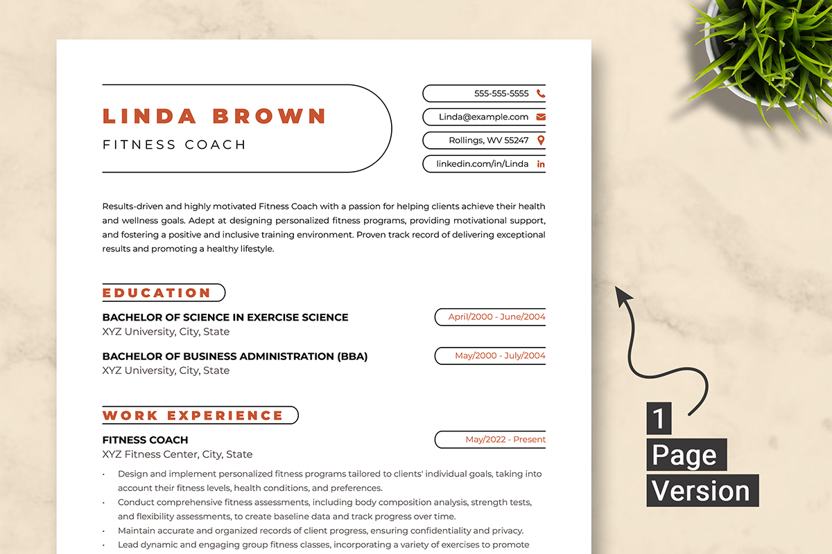 Fitness Coach Resume Template