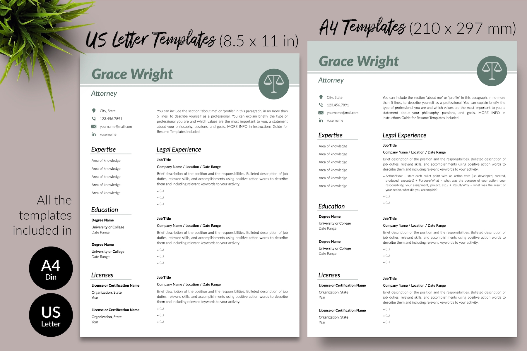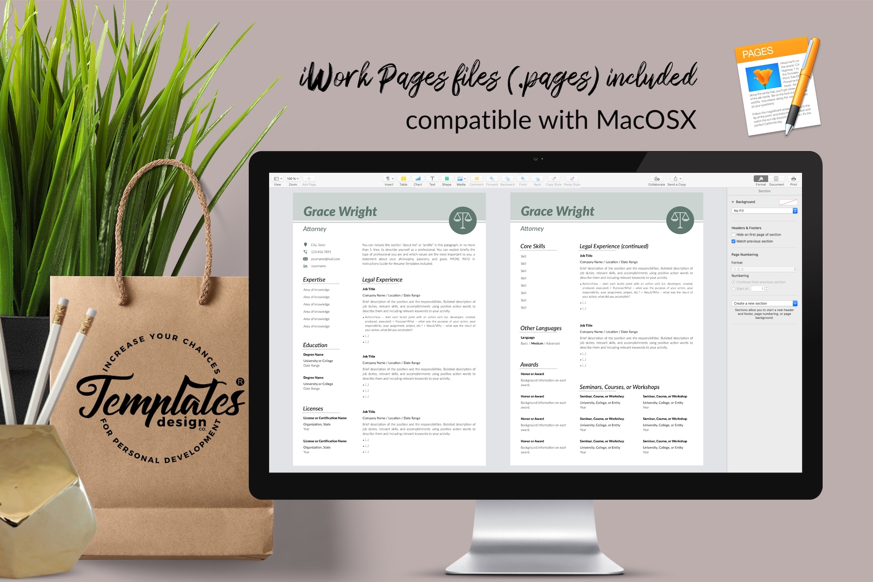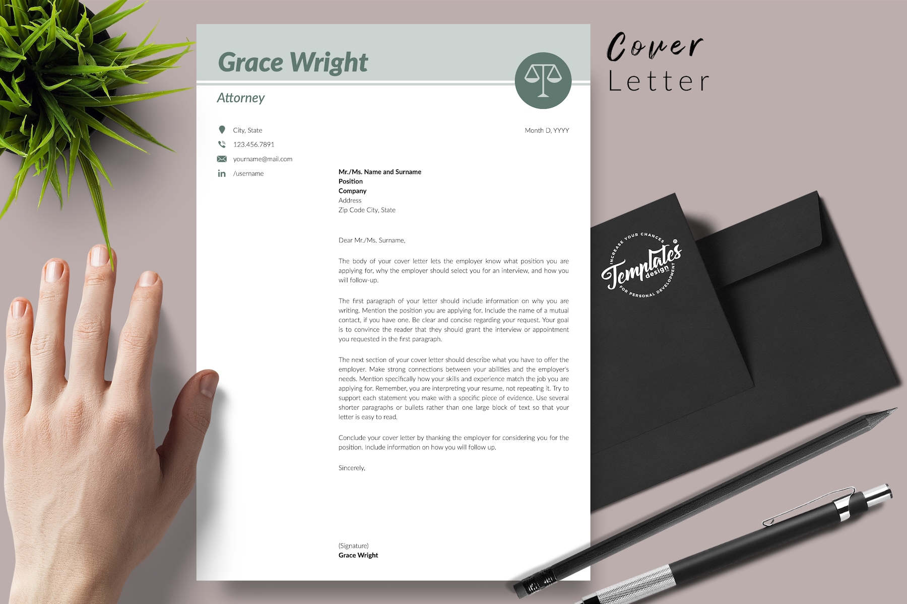 Grace Wright - Lawyer CV Resume Template with Cover Letter for Microsoft Word & iWork Pages