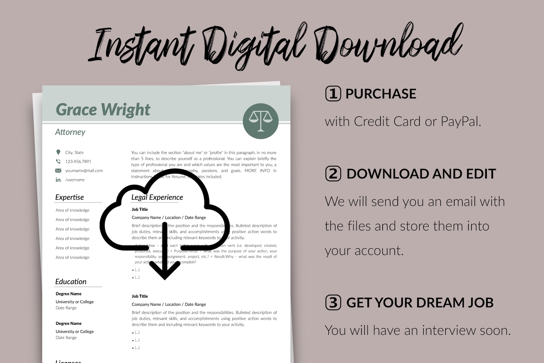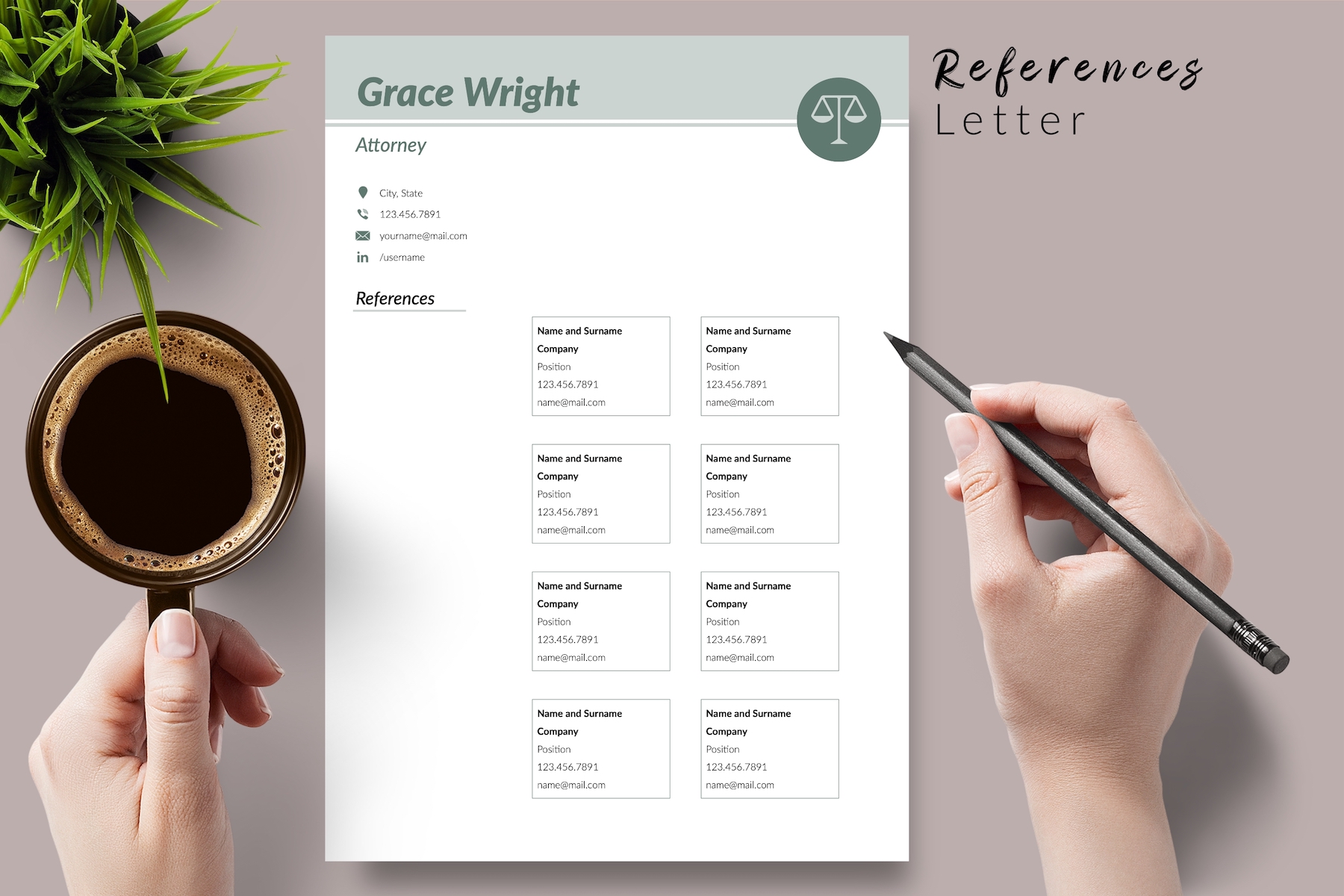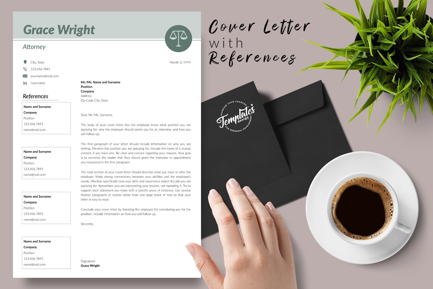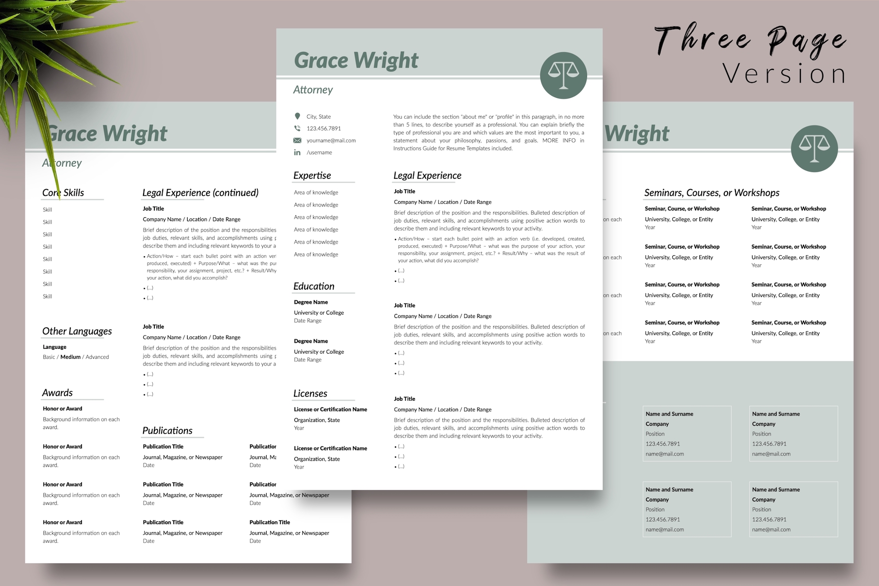 Grace Wright - Lawyer CV Resume Template with Cover Letter for Microsoft Word & iWork Pages