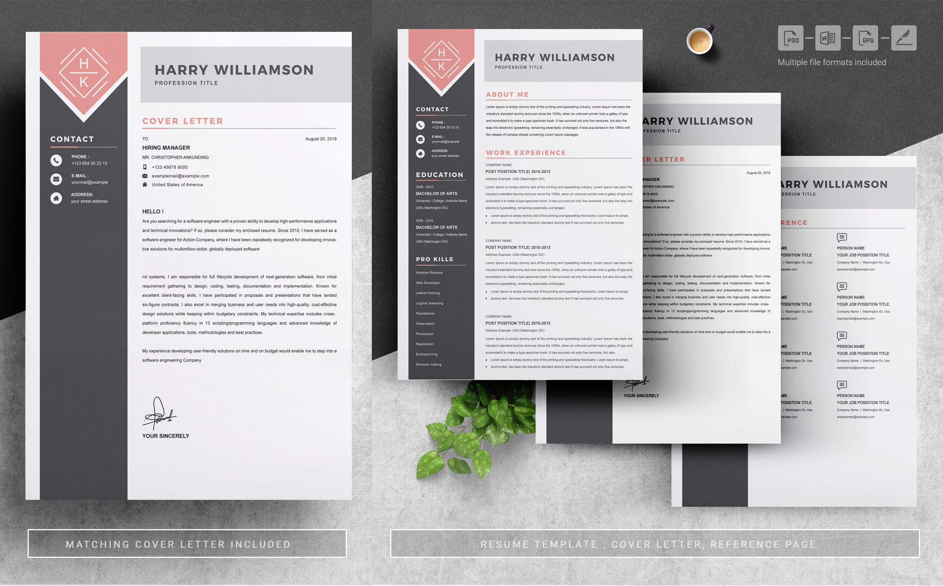 A template is simply multiple file-formats Microsoft Word document (or Mac Pages document, Photoshop (PSD) Illustrator (EPS) that is formatted using "text boxes" filled with my "dummy" information that you will type directly over with your own resume info. A quick text box tutorial is included in the Instructions file, included with purchase.