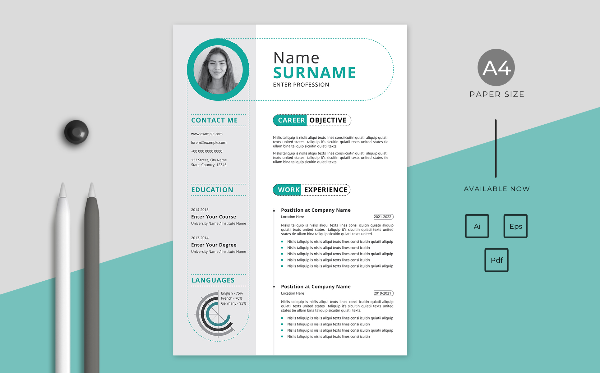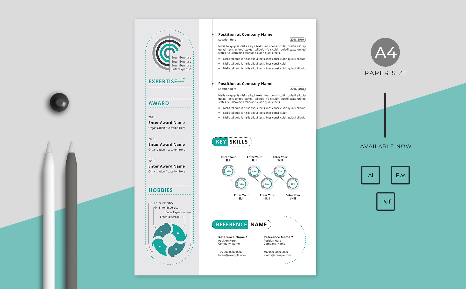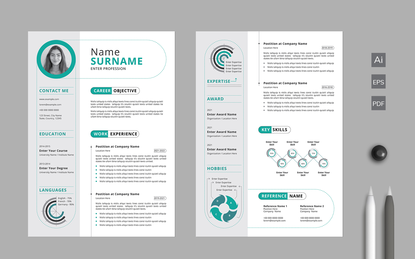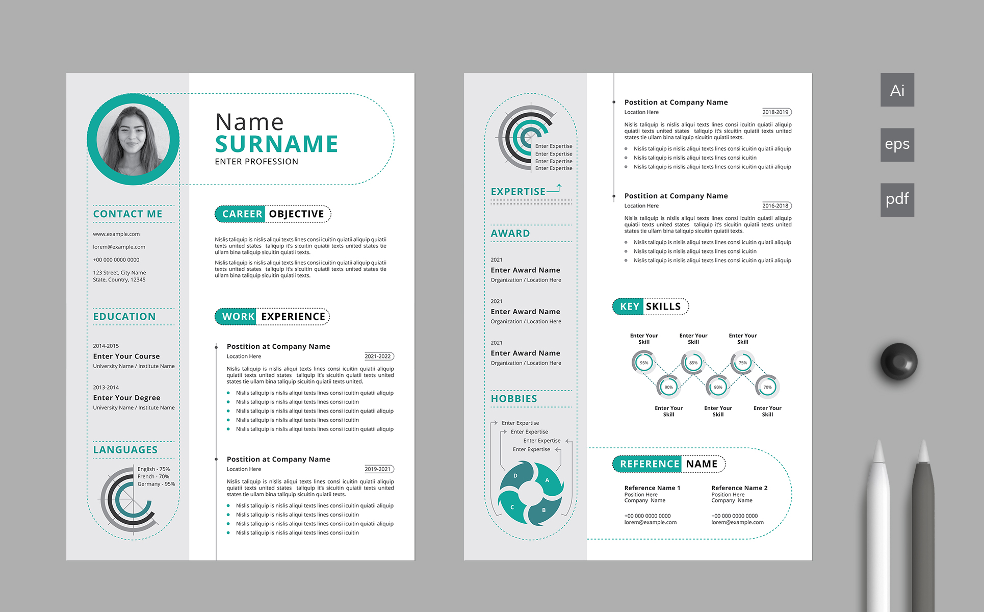 This is a infographic resume layout cv template in two page. Print Ready with 100% editable file. it’s designed by Adobe Illustrator. This is a professional CV format template setup with CMYK, Layered, 300 dpi, bleeds & safe guides, trims and free font. Template specification format a4 size 210x297 mm print dimension. It's a fully professional CV format. Thank you & hope you will enjoy it!
