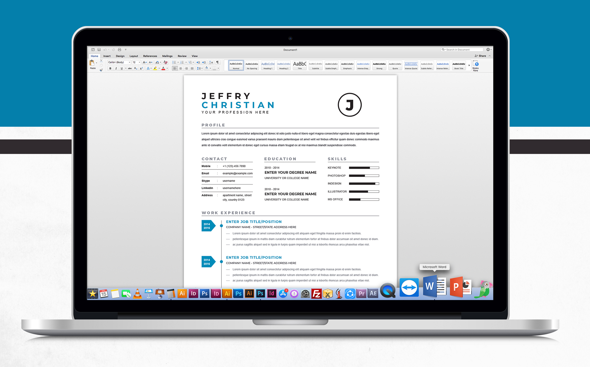 - Open the template in **Word, Pages, Photoshop, or Illustrator** and replace my "dummy" text with your resume content