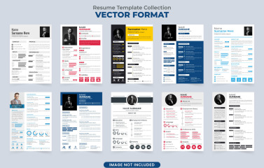 Job application resume template bundle. Office job application CV and resume template set vector with photo placeholders. Modern resume layout design collection for employees. Company intern CV template bundle vector for official work.
