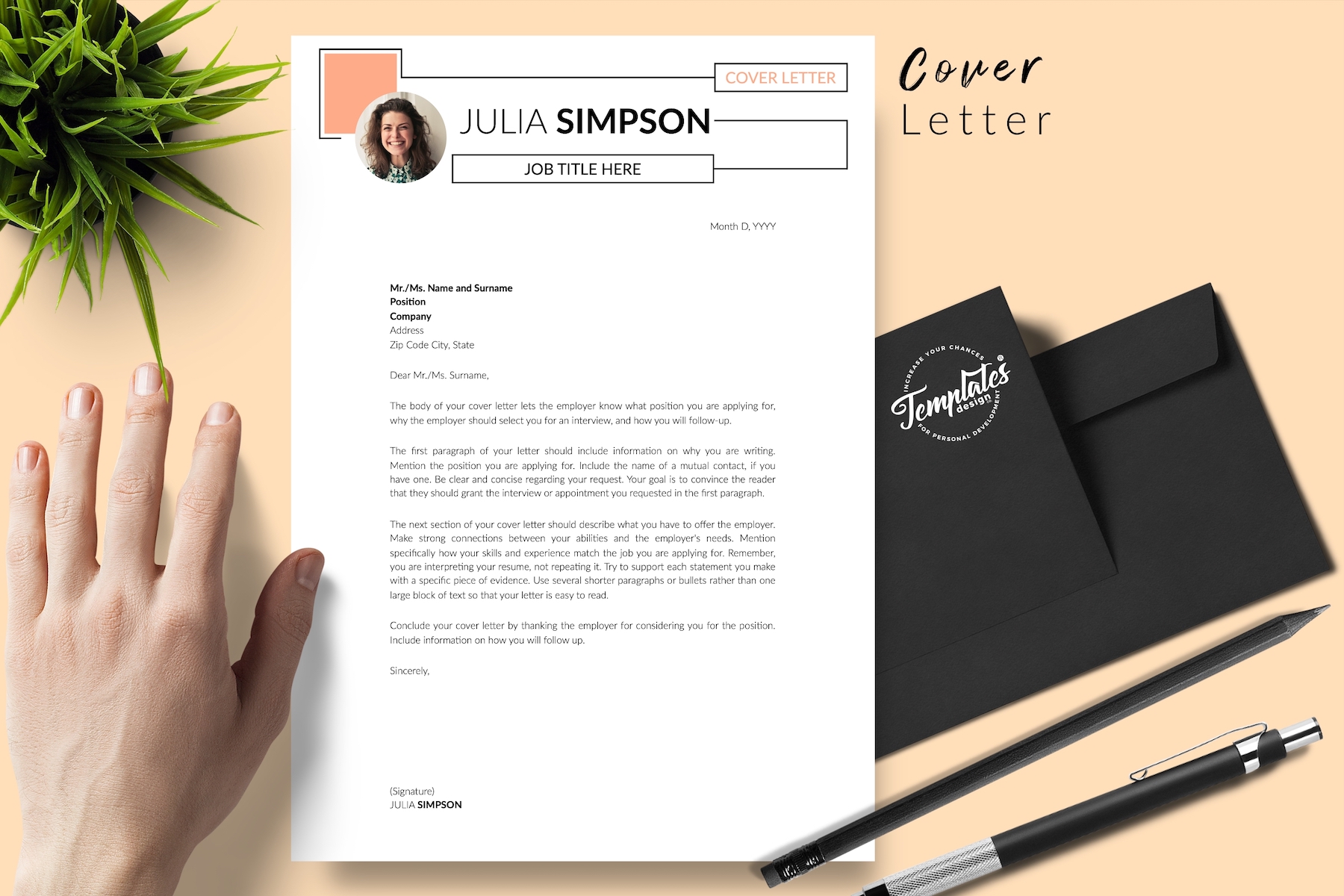 Julia Simpson - Creative CV Resume Template with Cover Letter for Microsoft Word & iWork Pages