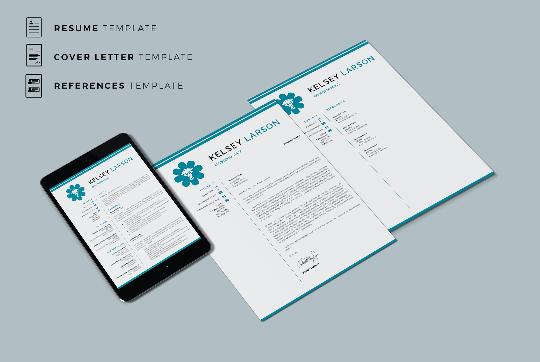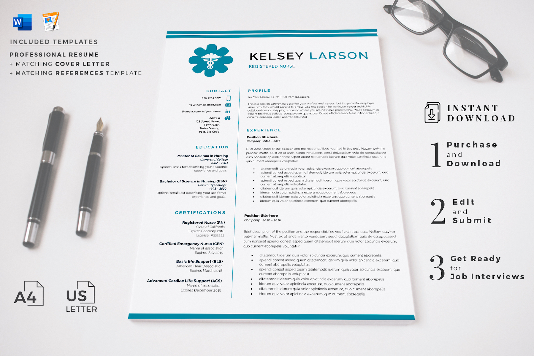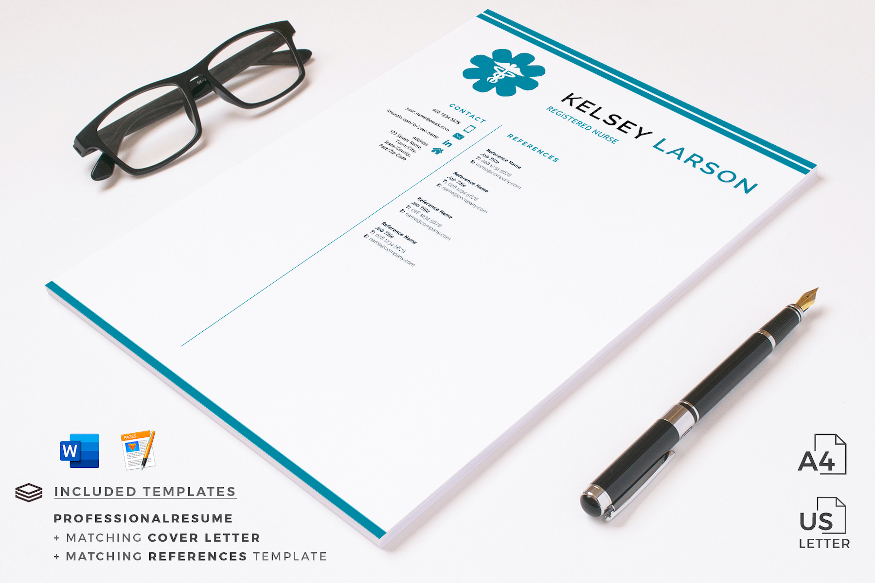 KELSEY - Nurse Resume Template. Pharmacy Resume for Word and Pages with Cover Letter and References