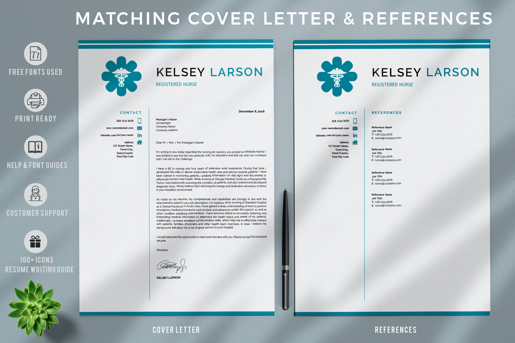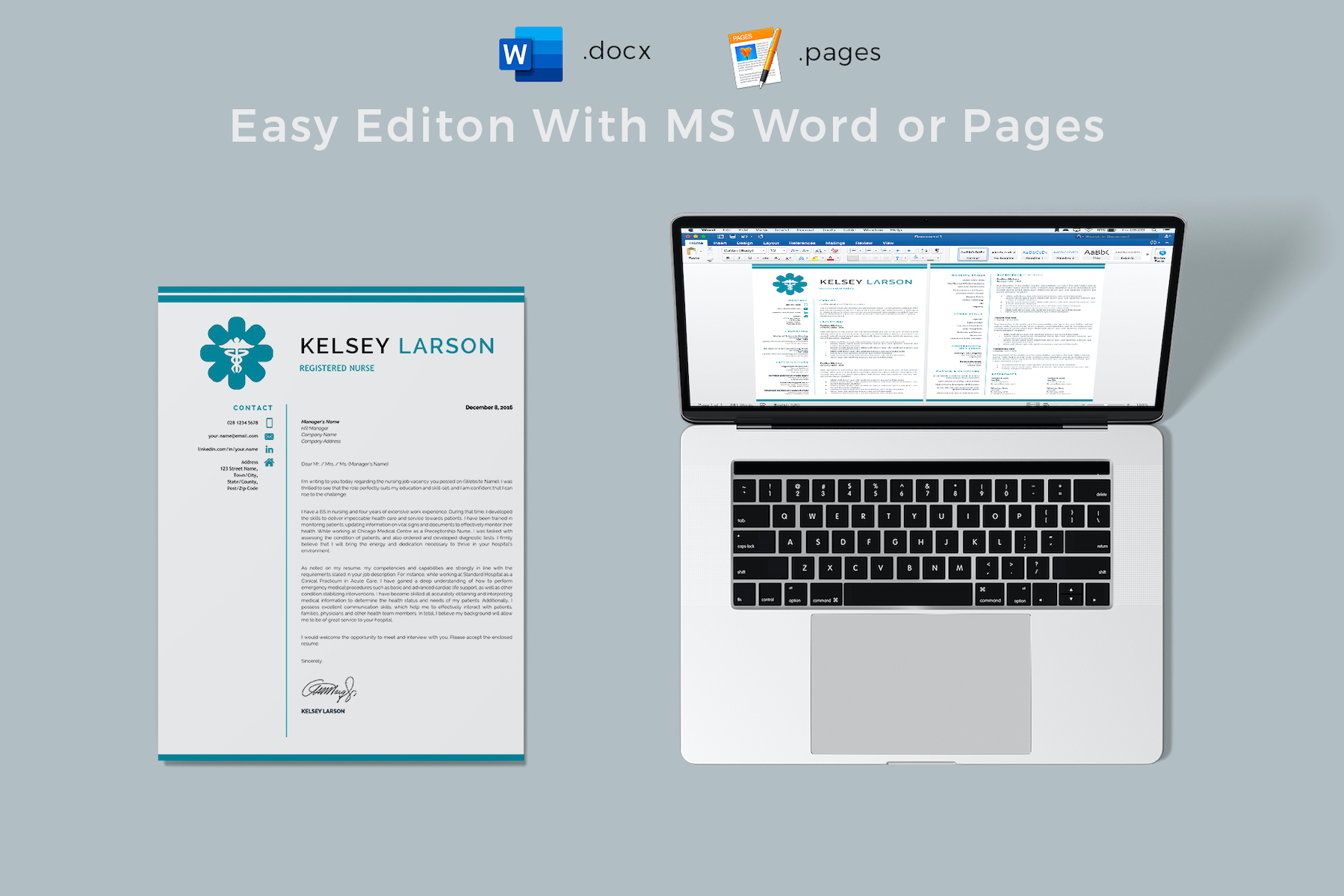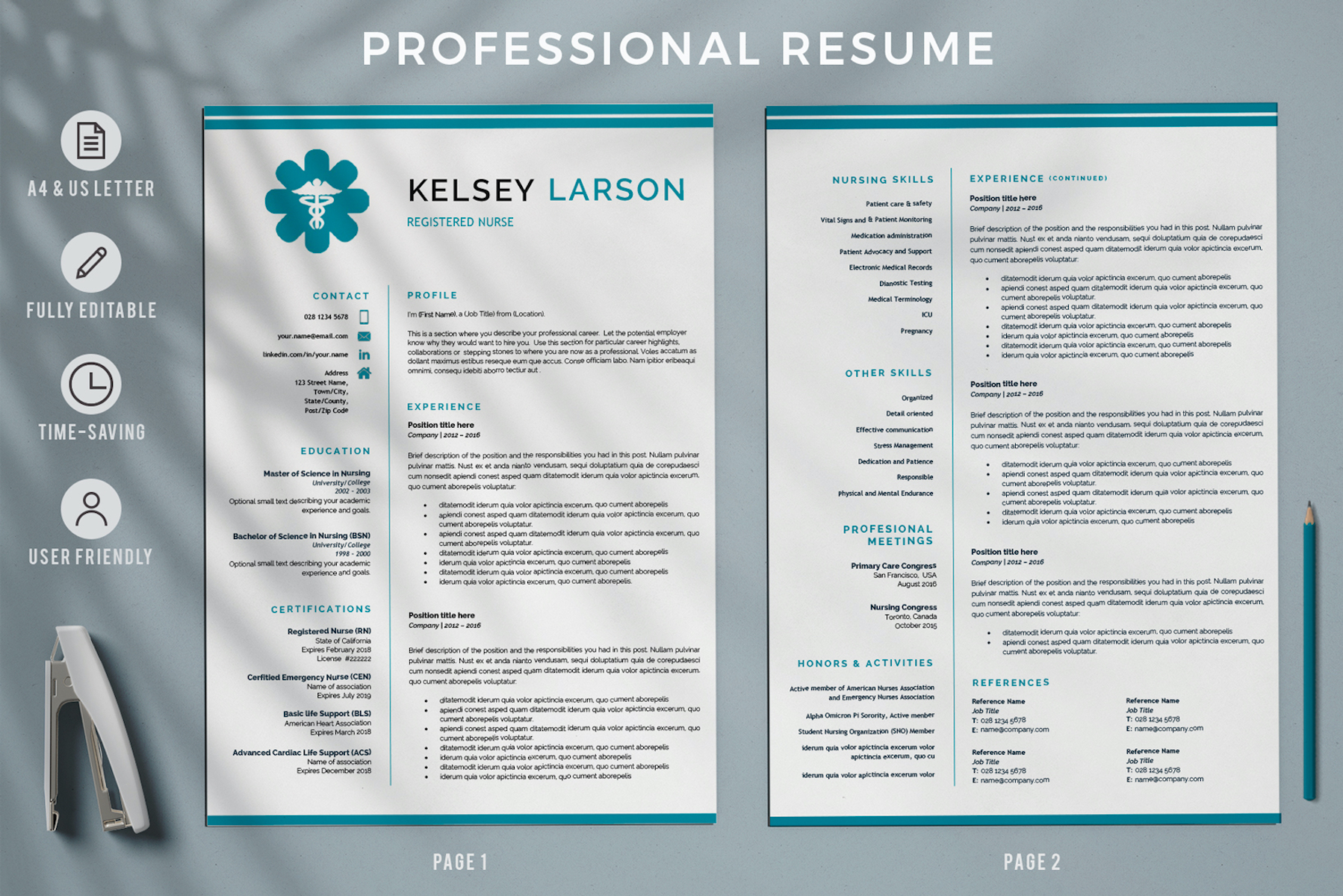 KELSEY - Nurse Resume Template. Pharmacy Resume for Word and Pages with Cover Letter and References