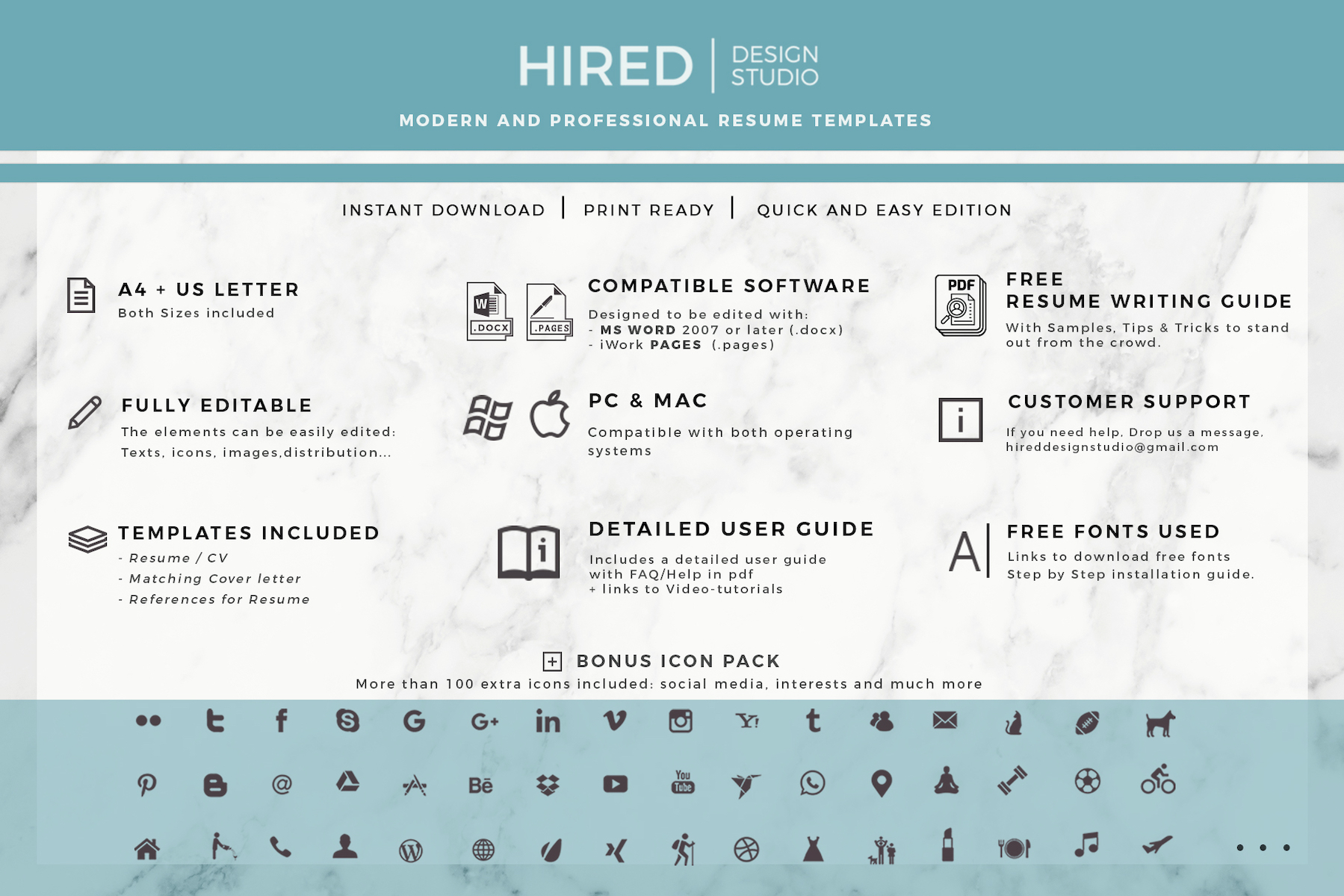 100+ extra icons including social media, interests/hobbies & contacts LinkedIn, Facebook, Twitter…✔