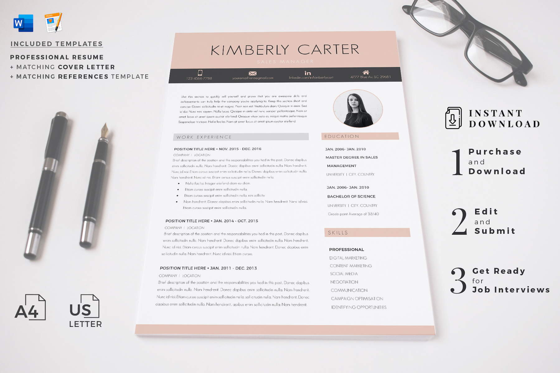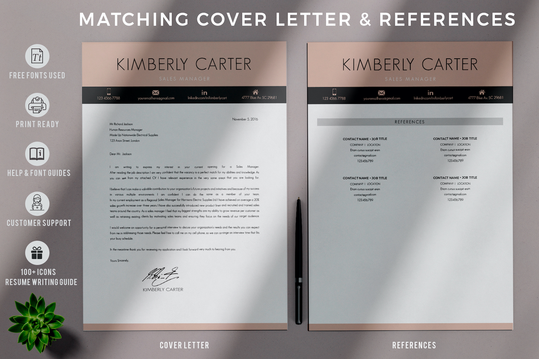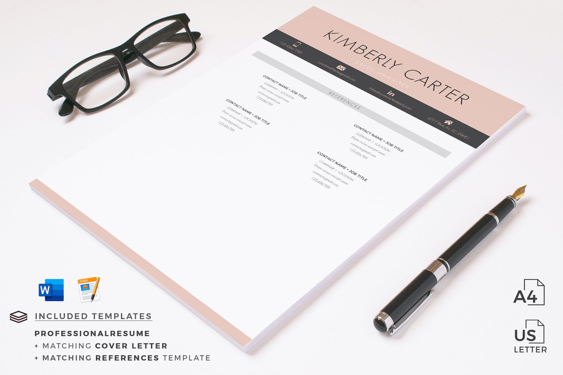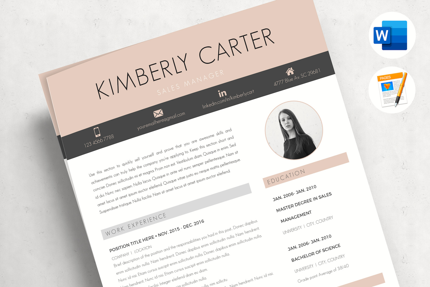 KIMBERLY - Modern CV template with photo for Sales Manager. CV Format with Cover and References Resume Template