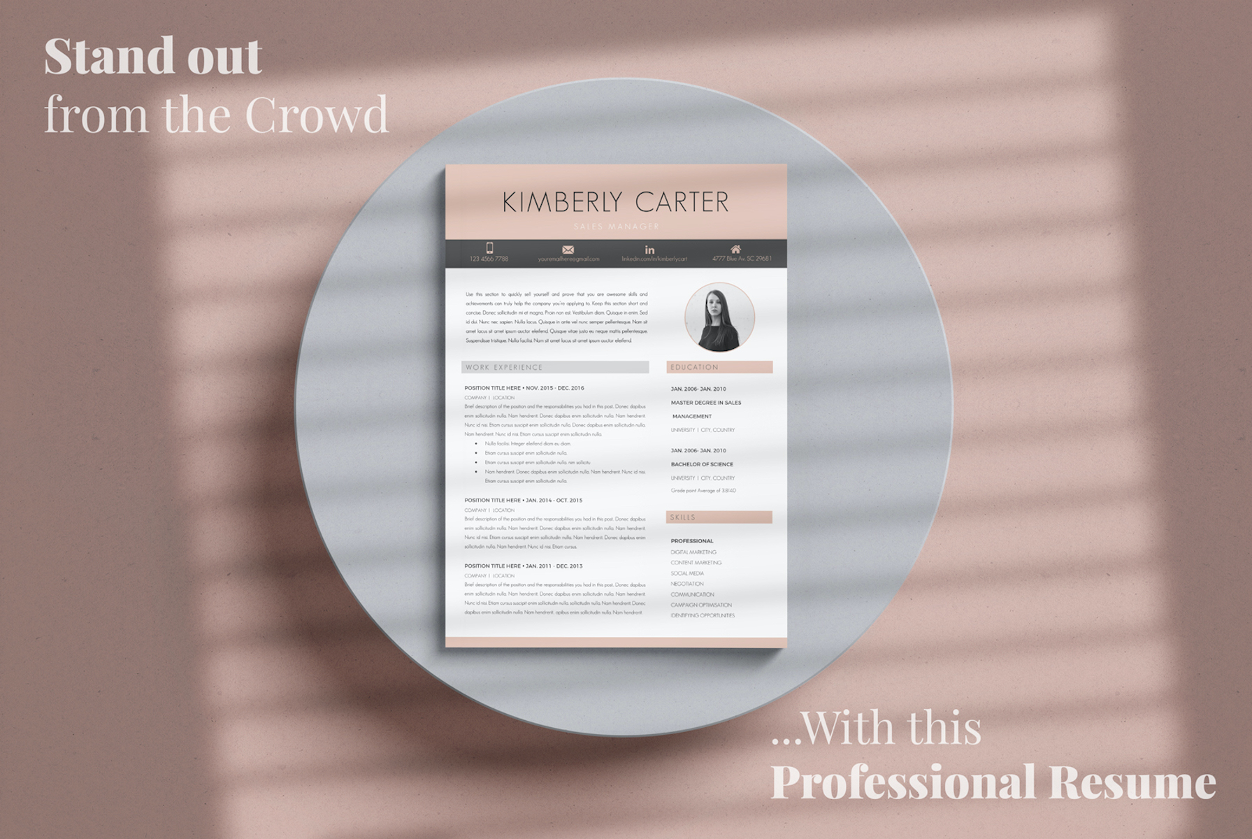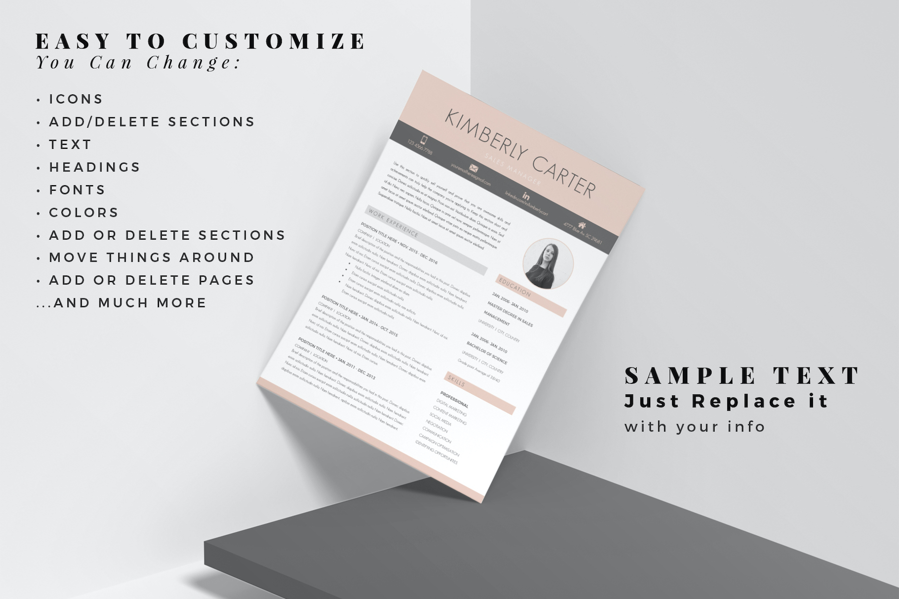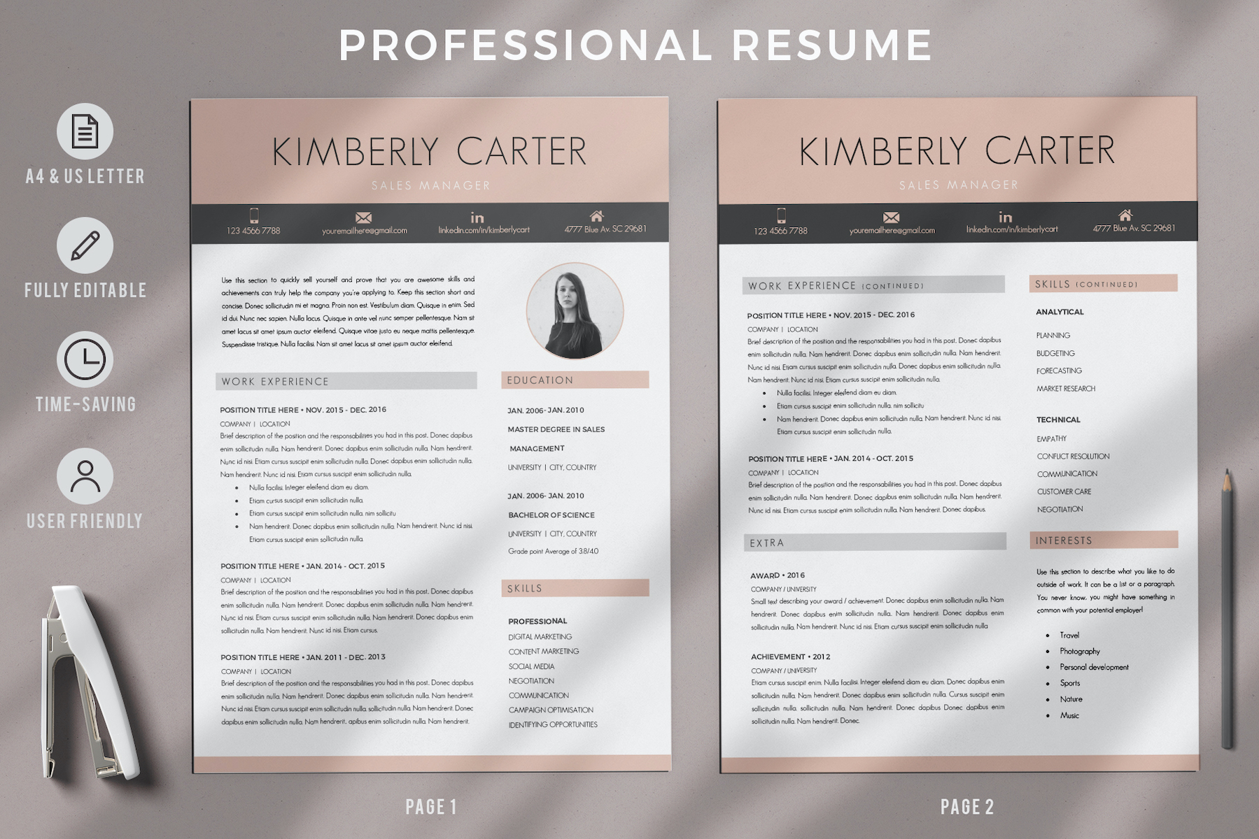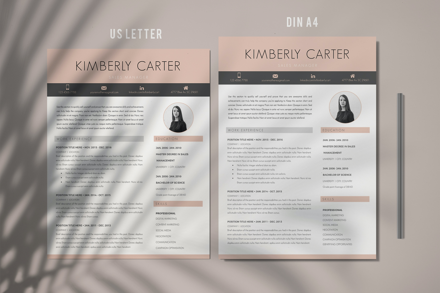 KIMBERLY - Modern CV template with photo for Sales Manager. CV Format with Cover and References Resume Template