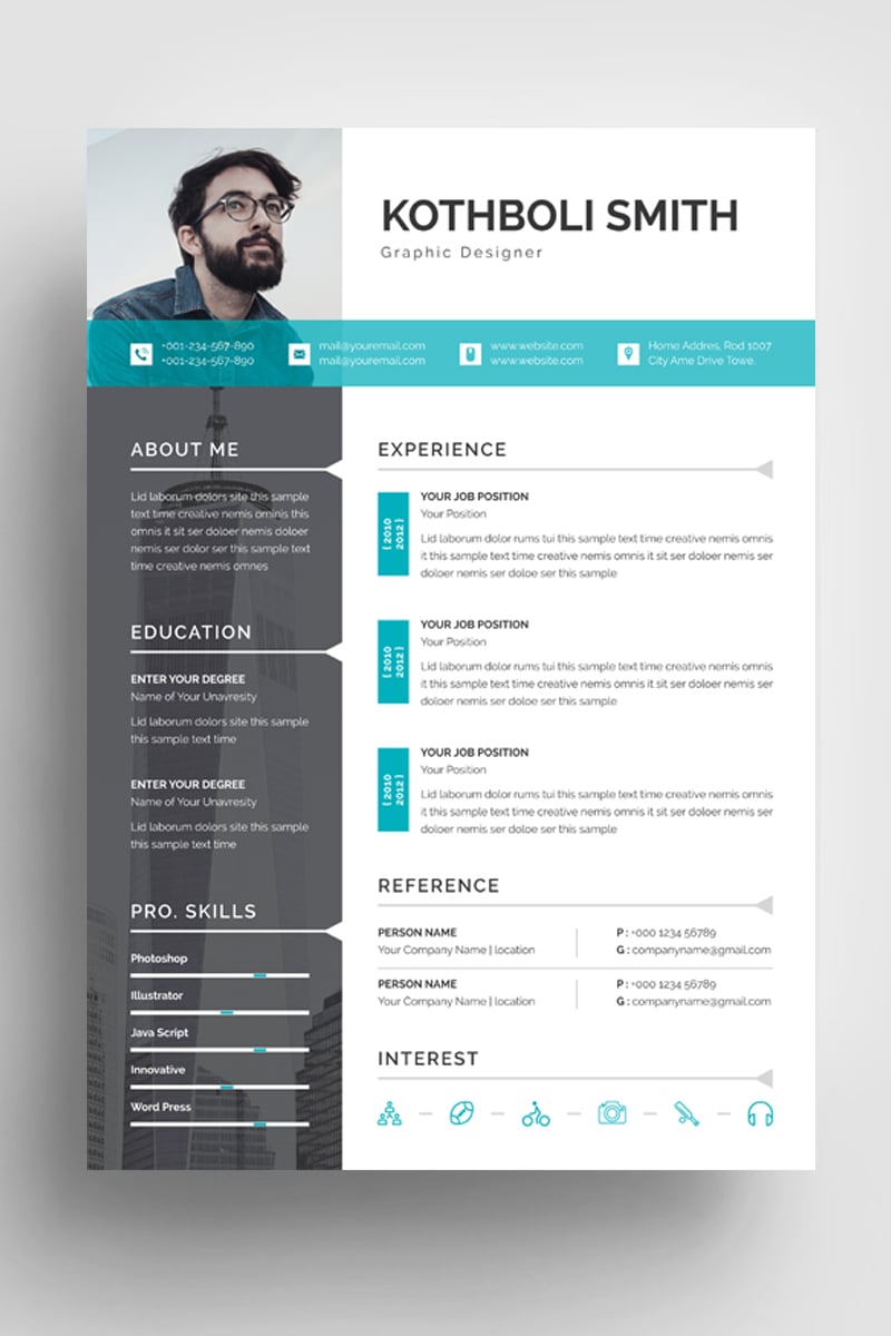 Looking for something that will distinguish you from the competition? resume/CV & Professional Resume Template will fully serve your needs. Designed in a violet and light color scheme, it has a coherent structure, that will ensure fluent perception. In addition, you will be able to customize its look up to your personal taste and switch between light color variants. Need to change the format of your resume? Play around with the design, structure, typography of this template in AI, EPS, PSD and DOCX Files. By the way, only free Google fonts were used in the production of this theme. No need to worry about a physical copy of your CV, because this theme is fully-optimized for printing and comes in a standard, A4 size. Specifically for those cases when a resume is not enough, this item is equipped with a cover letter bonus, so you will be able to provide all the necessary information for the resume/CV Template is your must-have for an eye-pleasing presentation of your candidacy.