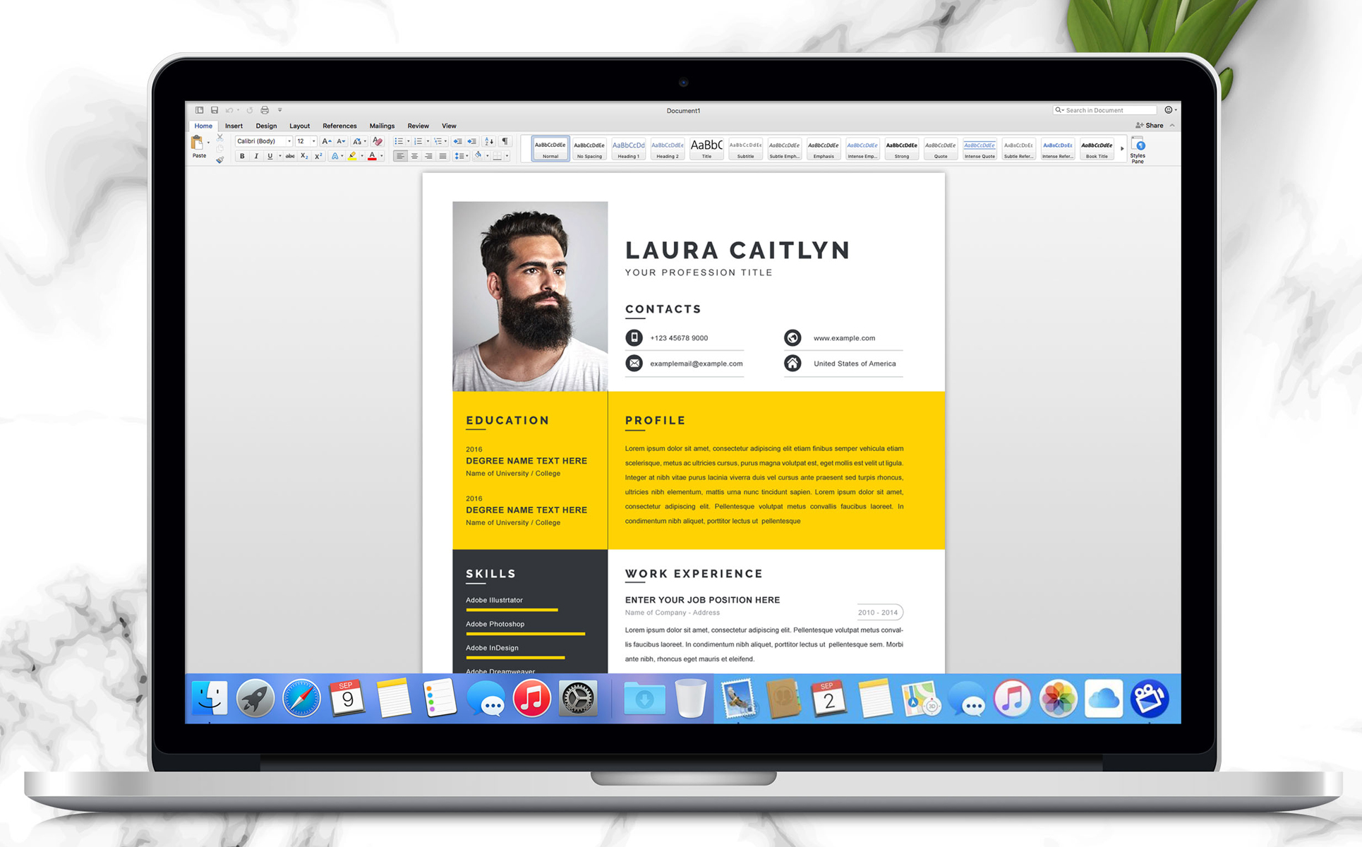 - Open the template in **Word, Pages, Photoshop, or Illustrator** and replace my "dummy" text with your resume content