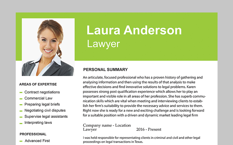 Lawyer CV & Professional Resume Template will fully serve your needs. Designed in a violet and white color scheme, it has a coherent structure, that will ensure fluent reader’s perception. In addition, you will be able to customize its look up to your personal taste and switch between 3 different color variants. Need to change the format of your resume? Play around with the design, structure, typography of this template in PSD, AI. Free fonts were used in the production of this theme. No need to worry about a physical copy of your CV, because this theme is fully-optimized for printing and comes in a standard, A4 size. Specifically for those cases when a resume is not enough, this item is equipped with a cover letter bonus, so you will be able to provide all the necessary information for the HR. Lawyer CV Template is your must-have for an eye-pleasing presentation of your candidacy. Try out Lawyer Resume Template right now!