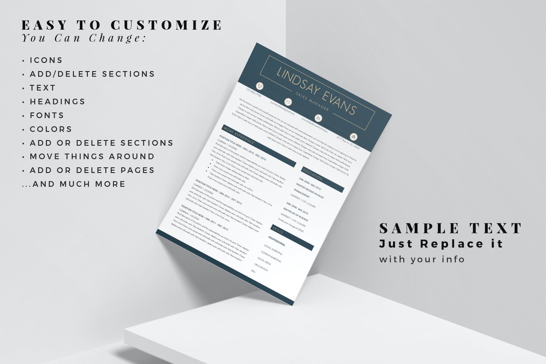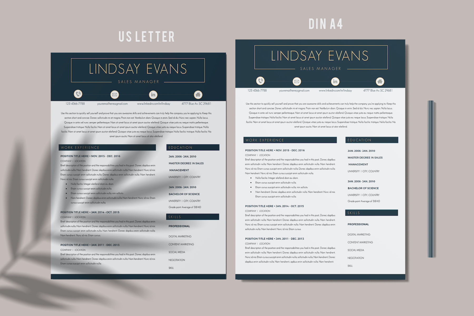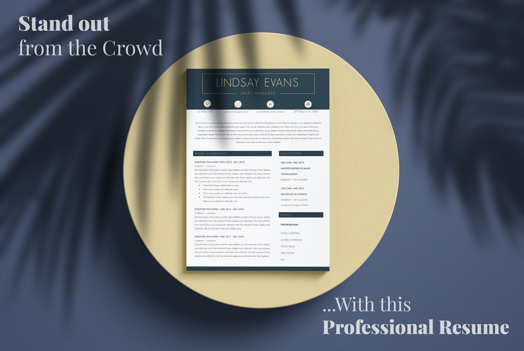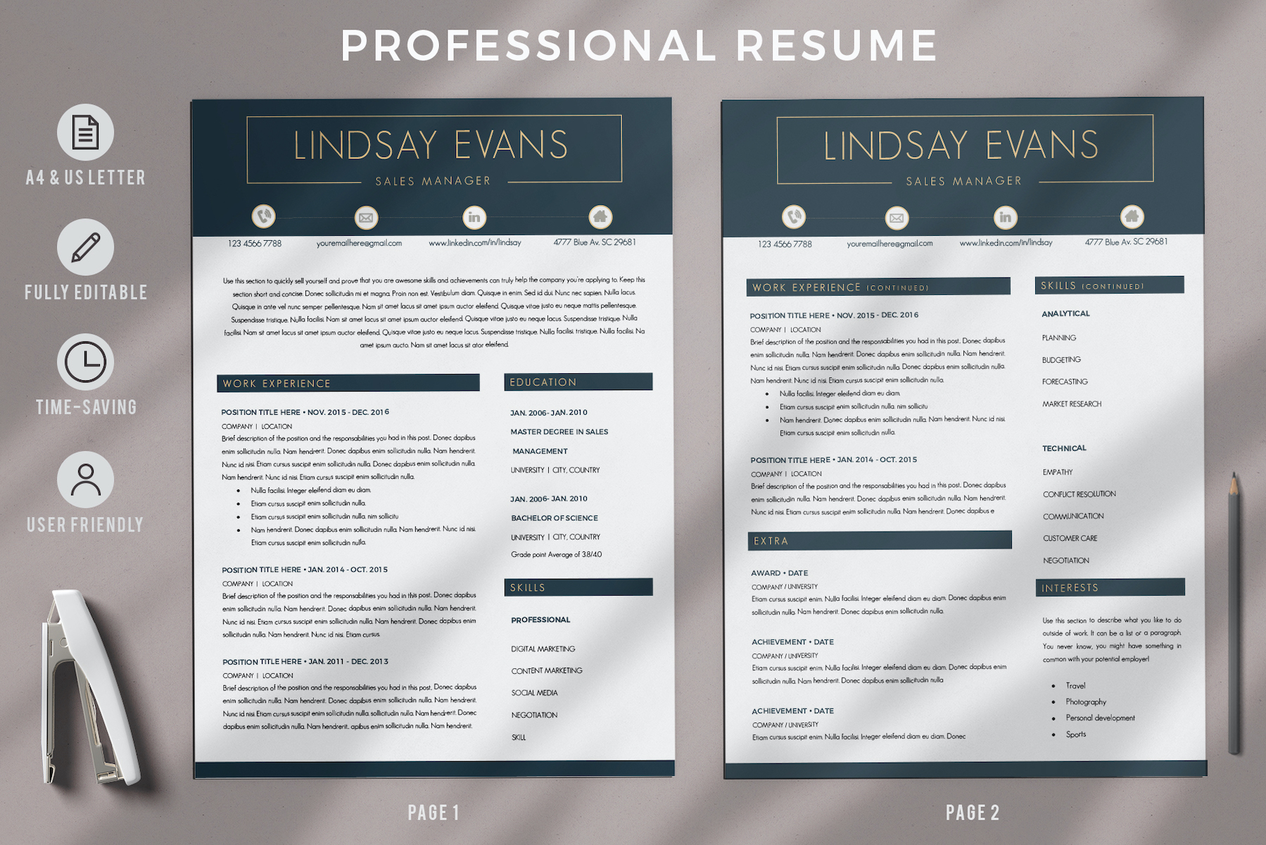 LINDSAY - Sales Manager Professional Resume, CV template + Cover Letter template + References Page Resume Template