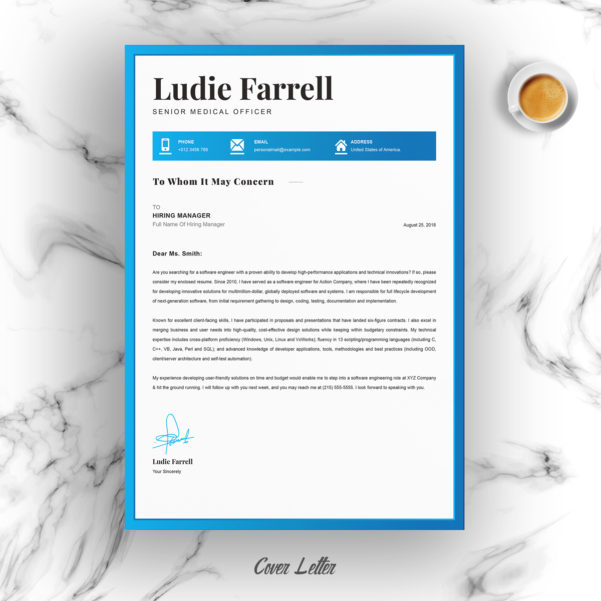 - One Page Template / Cover Letter