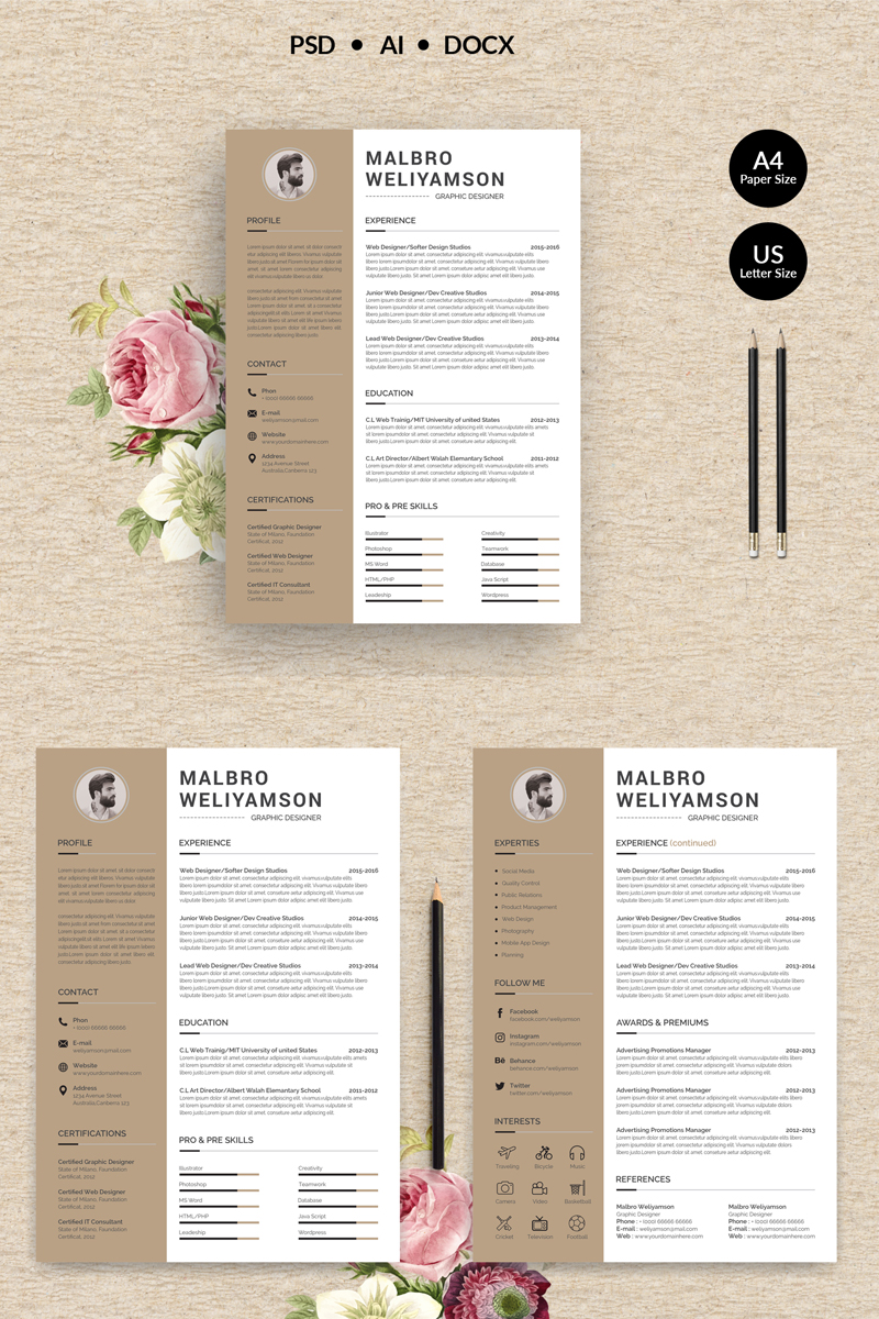 Easy to edit and customise, with two page resume design,one page reference page & cover letter templates. All elements can be customised to perfectly fit your needs. This is the fast and flexible solution for anyone looking for a professional looking resume.