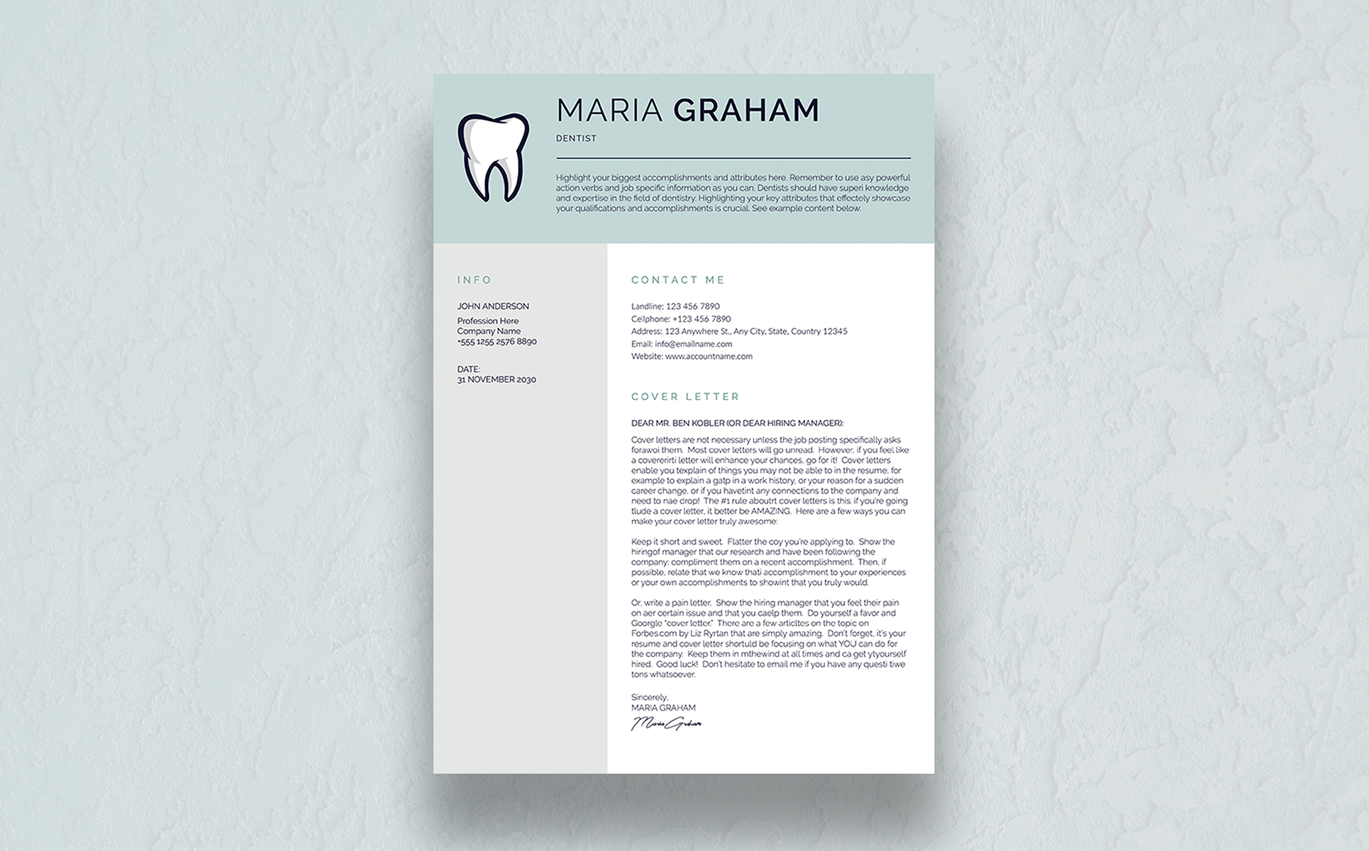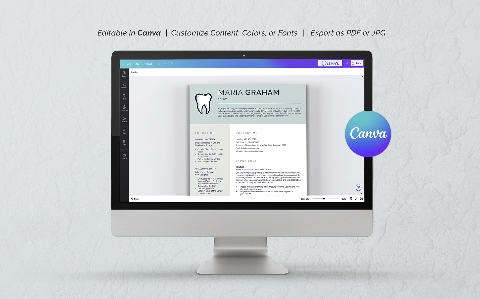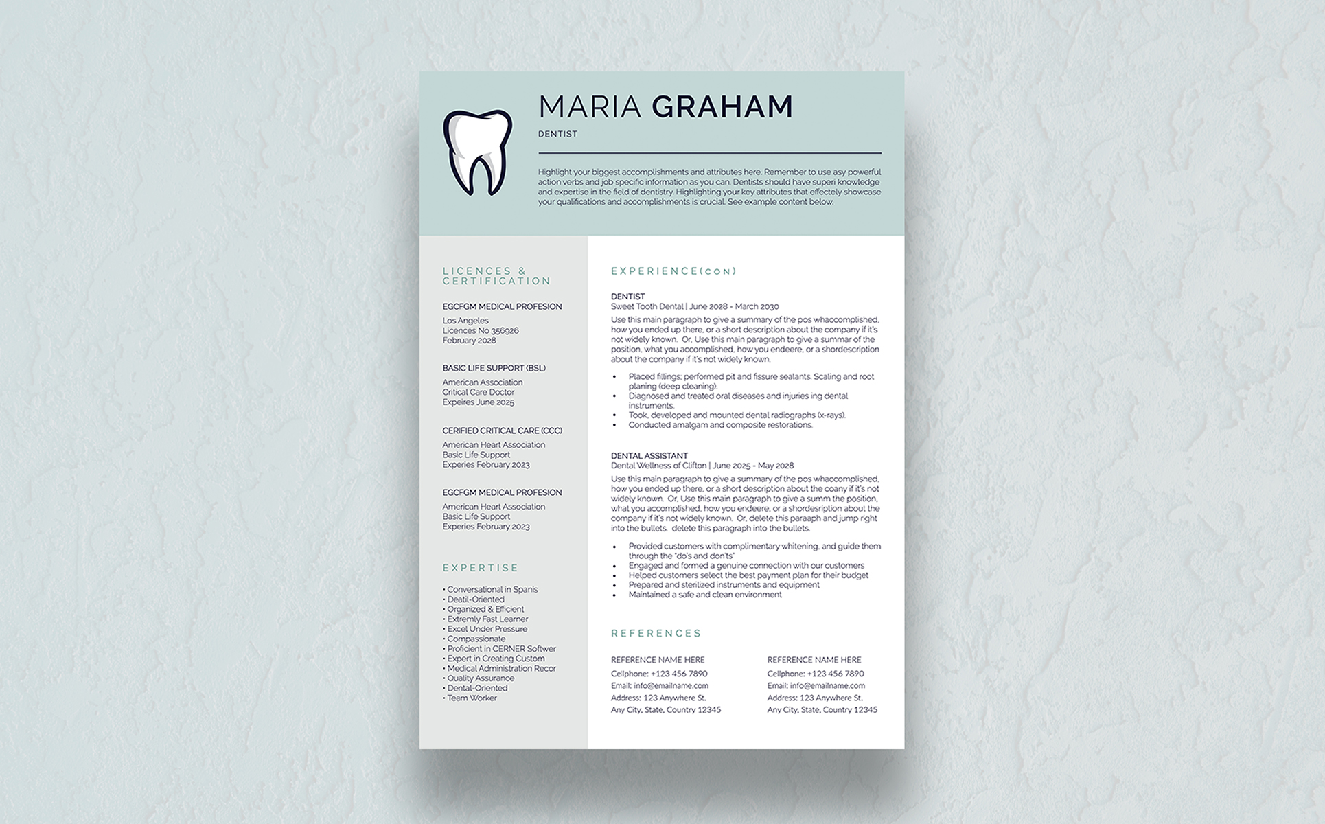 Maria Graham Canva Dental Resume Template